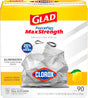 - DRAWSTRING TRASH BAGS: Ninety (90) 13-gallon Glad ForceFlex MaxStrength Protection Series Drawstring Tall Kitchen Trash Bags With Clorox in Lemon Fresh Bleach scent