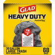 - HEAVY DUTY TRASH BAGS: Sixty-eight (68) 30-gallon Glad ForceFlex Heavy Duty Large Trash Bags that can handle the toughest jobs indoors and outdoors