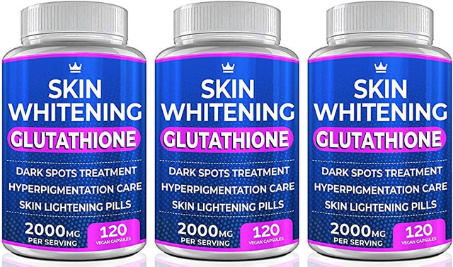 3 Pack Glutathione Whitening Pills - 120 Capsules 2000mg Glutathione - Effective Skin Lightening Supplement - Dark Spots, Melasma & Acne Scar Remover, Hyperpigmentation Treatment - Anti-Aging Antioxidant