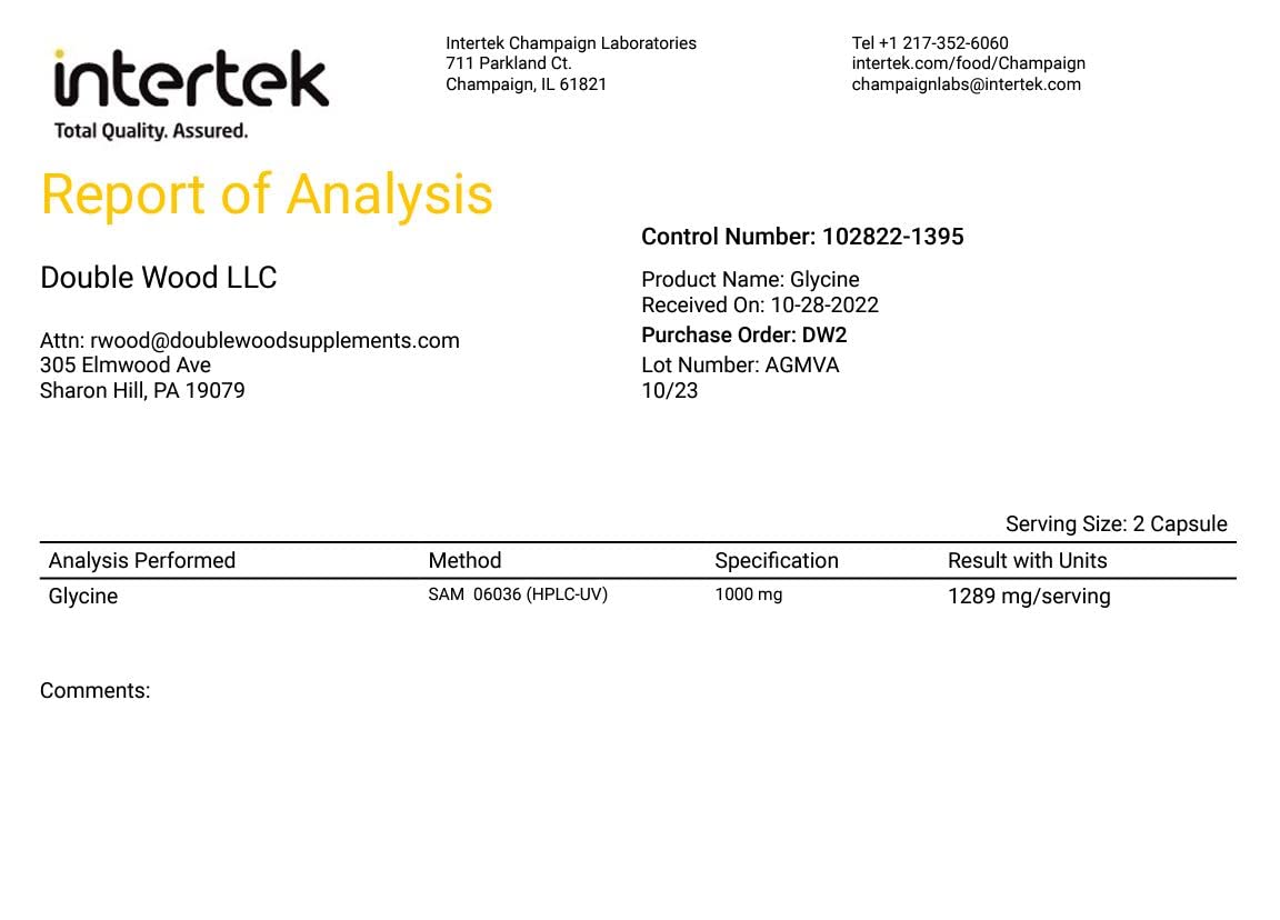 - ROOTED IN QUALITY: Manufactured and Tested in the USA from Globally Sourced Ingredients. Double Wood's Glycine is manufactured and tested for microbes and heavy metals right here in the USA from Globally Sourced Ingredients. Plus, it is Non-GMO and gluten-free