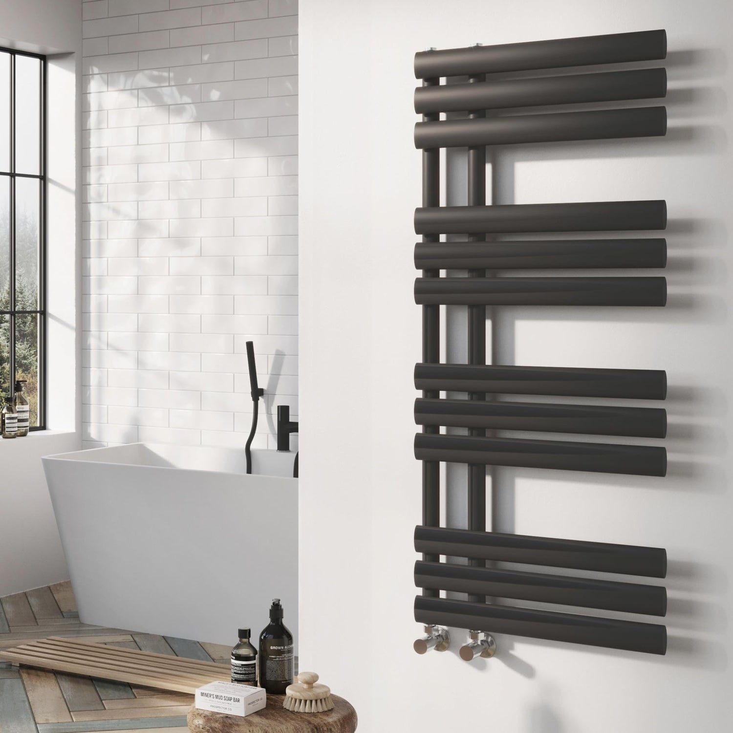 Go Bathrooms Black Towel Radiator 1130 x 500 Heated Towel Rail Vertical Designer Bathroom Radiator Heated Ladder Rail Central Heating