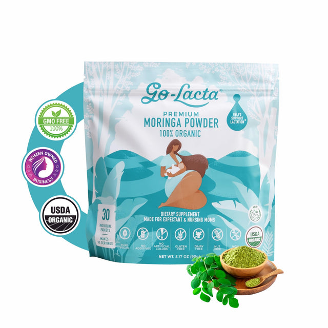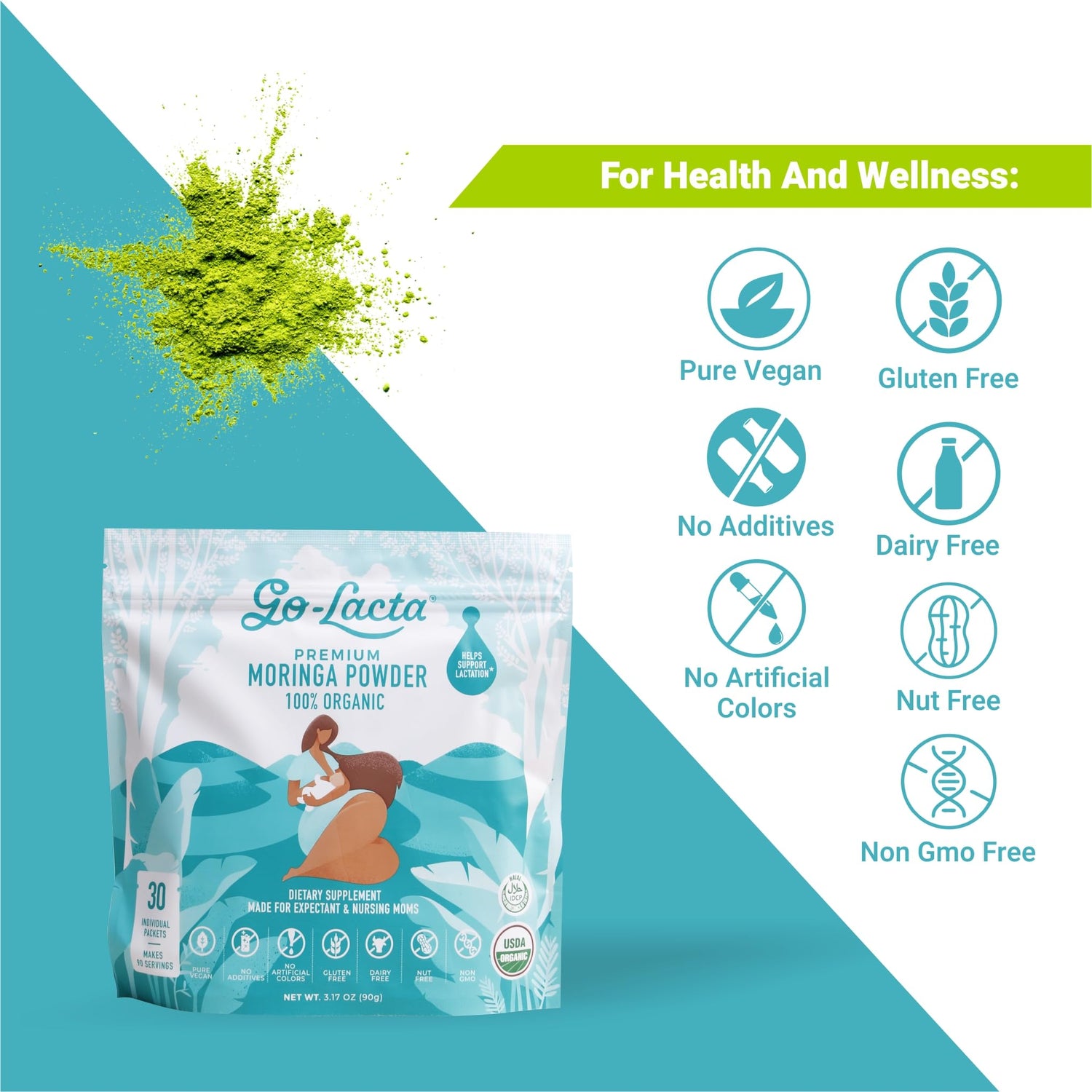 Go-Lacta® Super Moringa Powder: Boost Breast Milk Naturally! 30 3g Packets of Pure Organic Moringa - Perfect for Moms, 100% Vegan
