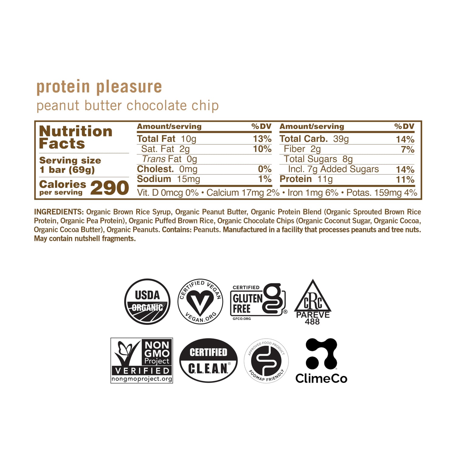 Details: With a crave-worthy blend of organic creamy peanut butter, chopped roasted peanuts, and organic vegan chocolate chips, our Peanut Butter Chocolate Chip MacroBar is so delicious, you’ll hardly believe it’s made with simple, wholesome, organic ingredients! Like all of our plant-based protein bars, Protein Pleasure is Certified Organic, Vegan, Gluten-Free, Kosher, Non-GMO, C.L.E.A.N., FODMAP Friendly, and Soy-Free.