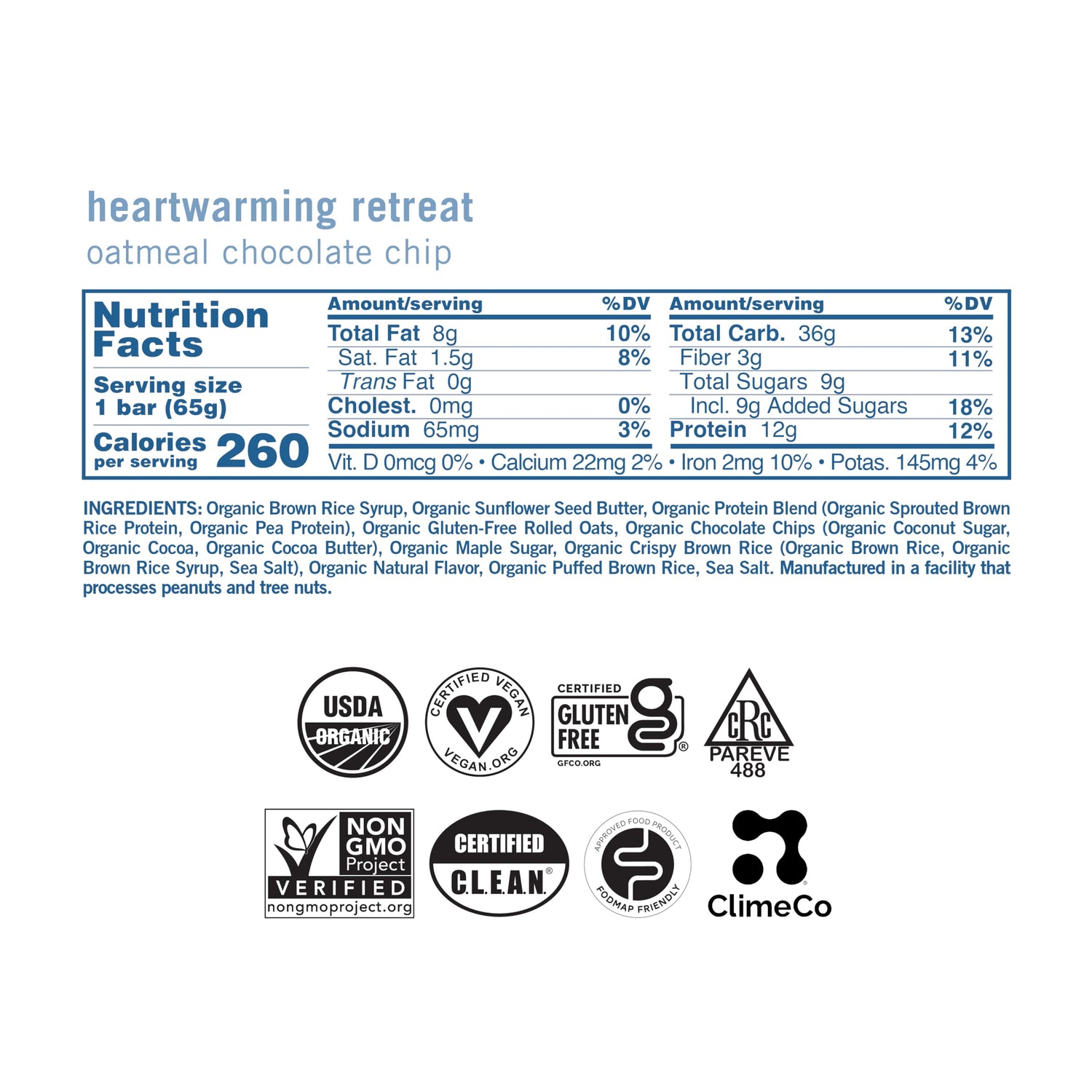 - HEALTHY INDULGENCE: A cozy combination of chewy oats and organic chocolate chips make this protein-filled, nut-free version of our family’s oatmeal chocolate chip cookie recipe a fan favorite.