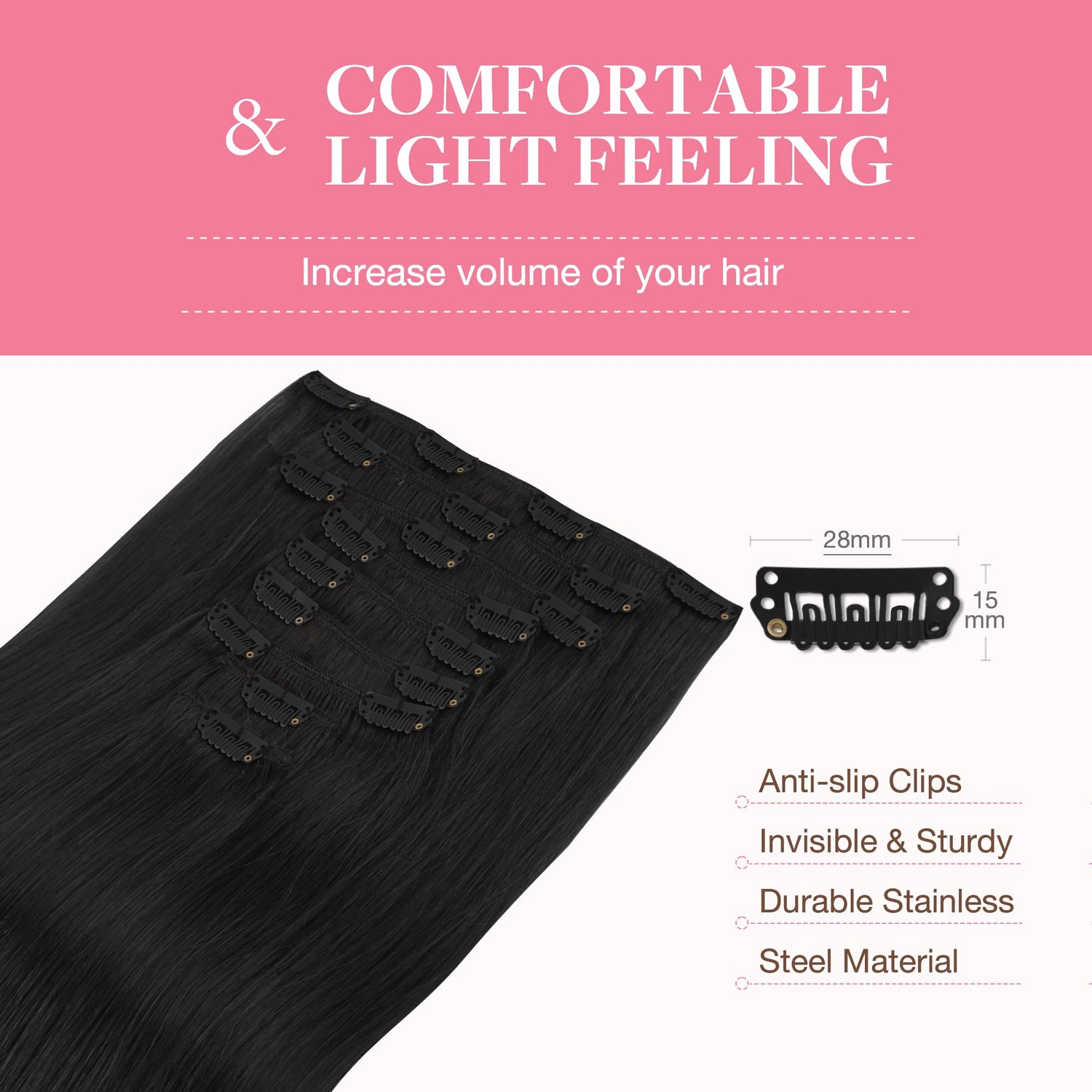 - High Quality Clips, Quick to Wear: Slim, silicone backed clips with a PU design make our extensions invisible, comfortable, and lightweight. Securely stitched and cushioned, they protect your scalp and hair. Easy to apply, perfect for any occasion