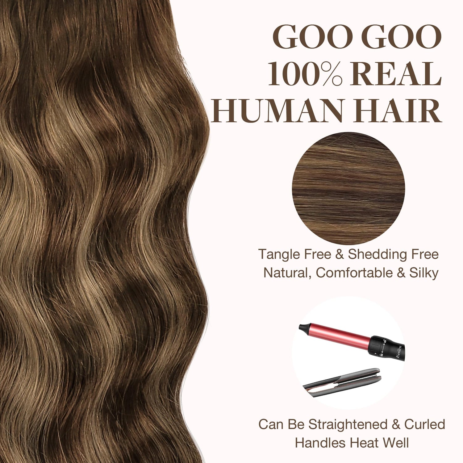 GOO GOO Tape in Hair Extensions Human Hair, 4/27/4 Balayage Chocolate Brown to Caramel Blonde, 20inch 50g 20pcs, Thick Ends Straight Seamless, Invisible