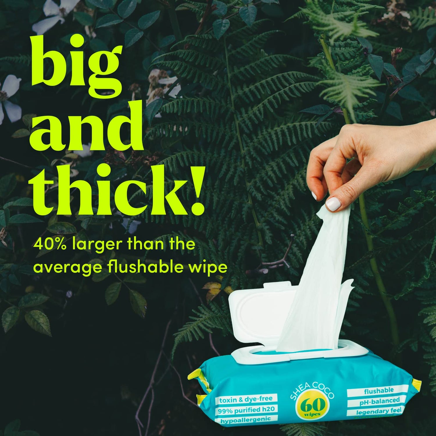 Goodwipes Flushable Butt Wipes Made with Vitamin E & Aloe - Soft & Gentle Wet Wipe Dispenser for Home Use, Septic & Sewer Safe - Largest Adult Toilet Towelettes - Shea Coco, 360 Count (6 Packs)