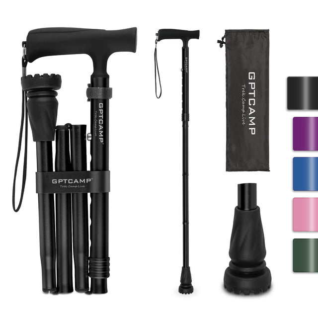 GPTCAMP G2 Walking Stick, Fold-up Walking Cane for Women and Men with Wrist Strap, Portable, Foldable, Collapsible, Lightweight and Sturdy with Comfortable T Handle