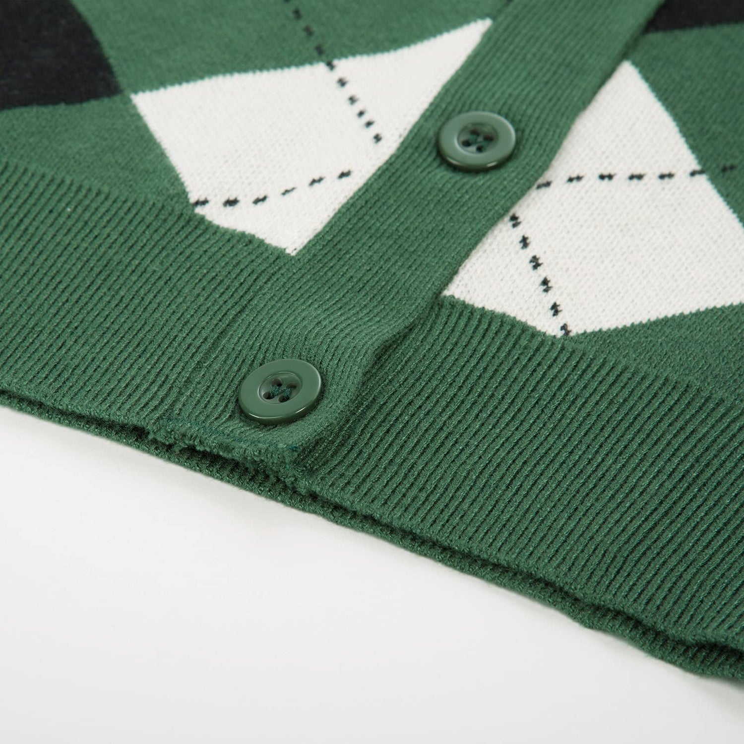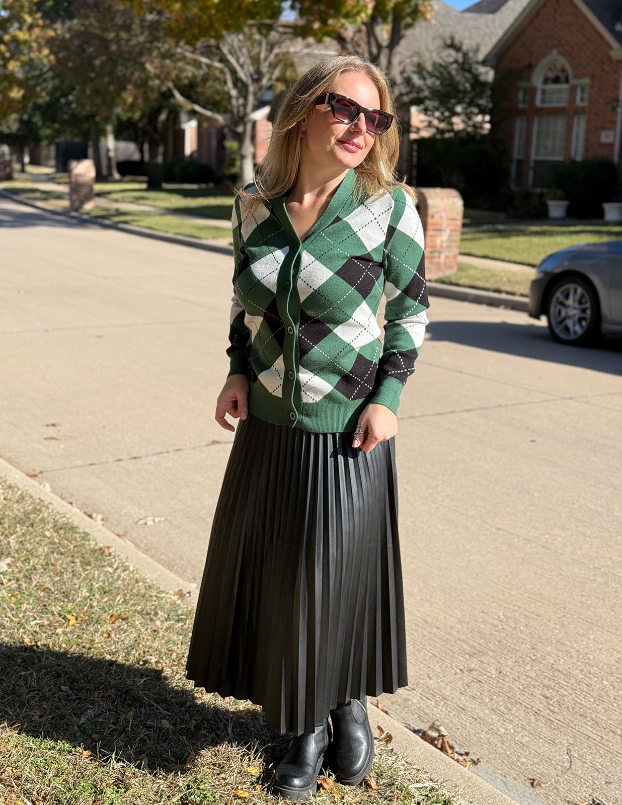 - 【Features】Slim Fit, Long Sleeve, V-Neck Top, Button Down Front, Argyle Plaid Knit Cardigan, Ribbed Bottom Hemline and Cuffs, Comes in Both Regular and Plus Sizes.