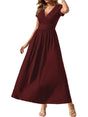 Gracyoga Womens Summer Wrap Christmas Dresses Fall Midi Smocked Swing Wine Red Dress Empire Waist Vintage V Neck High Waist Casual Long Sundress Dinner Outfit L