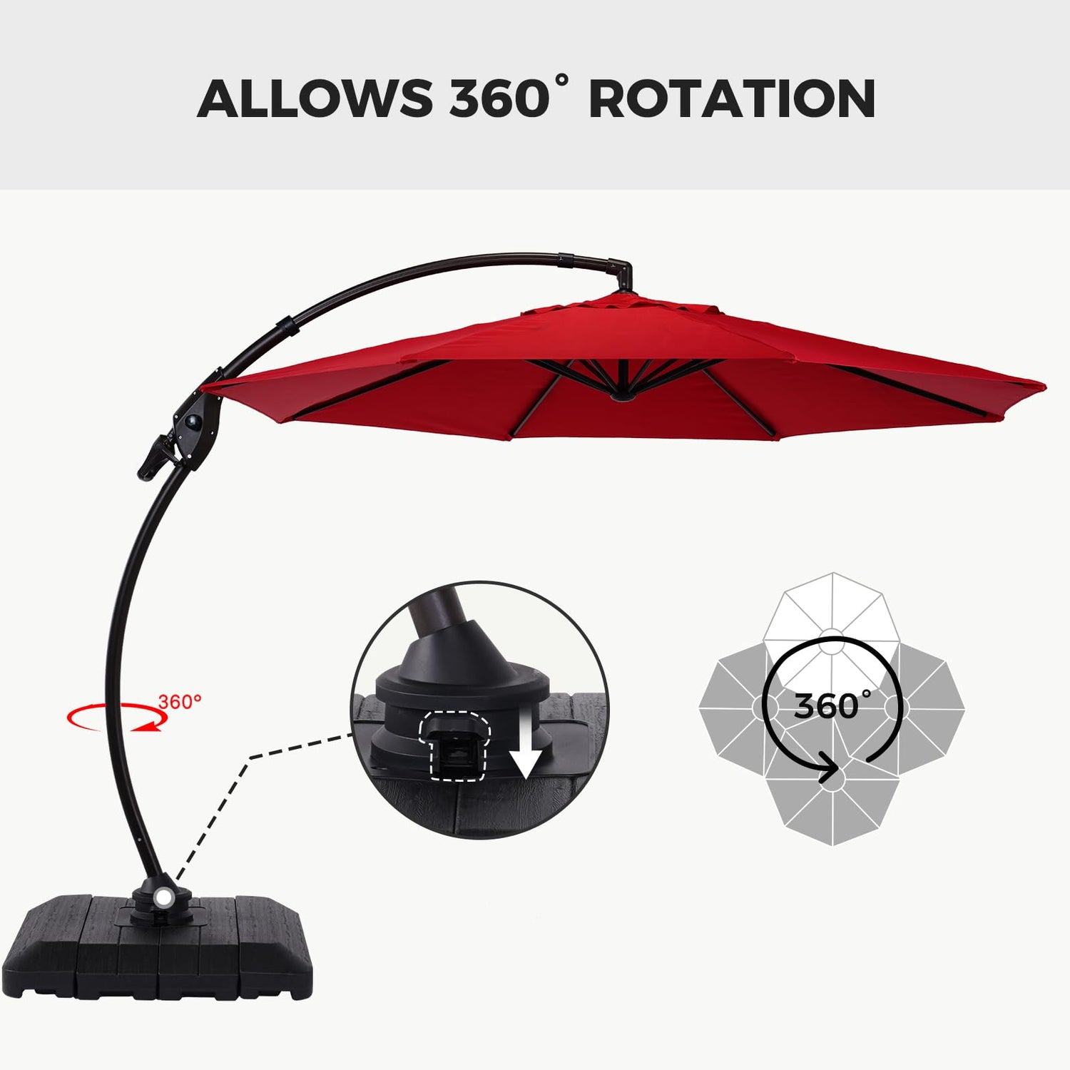 Grand patio Napoli 11 FT Cantilever Offset Umbrella Aluminum Frame with 360° Rotation without Base, Red is backordered and will ship as soon as it is back in stock.