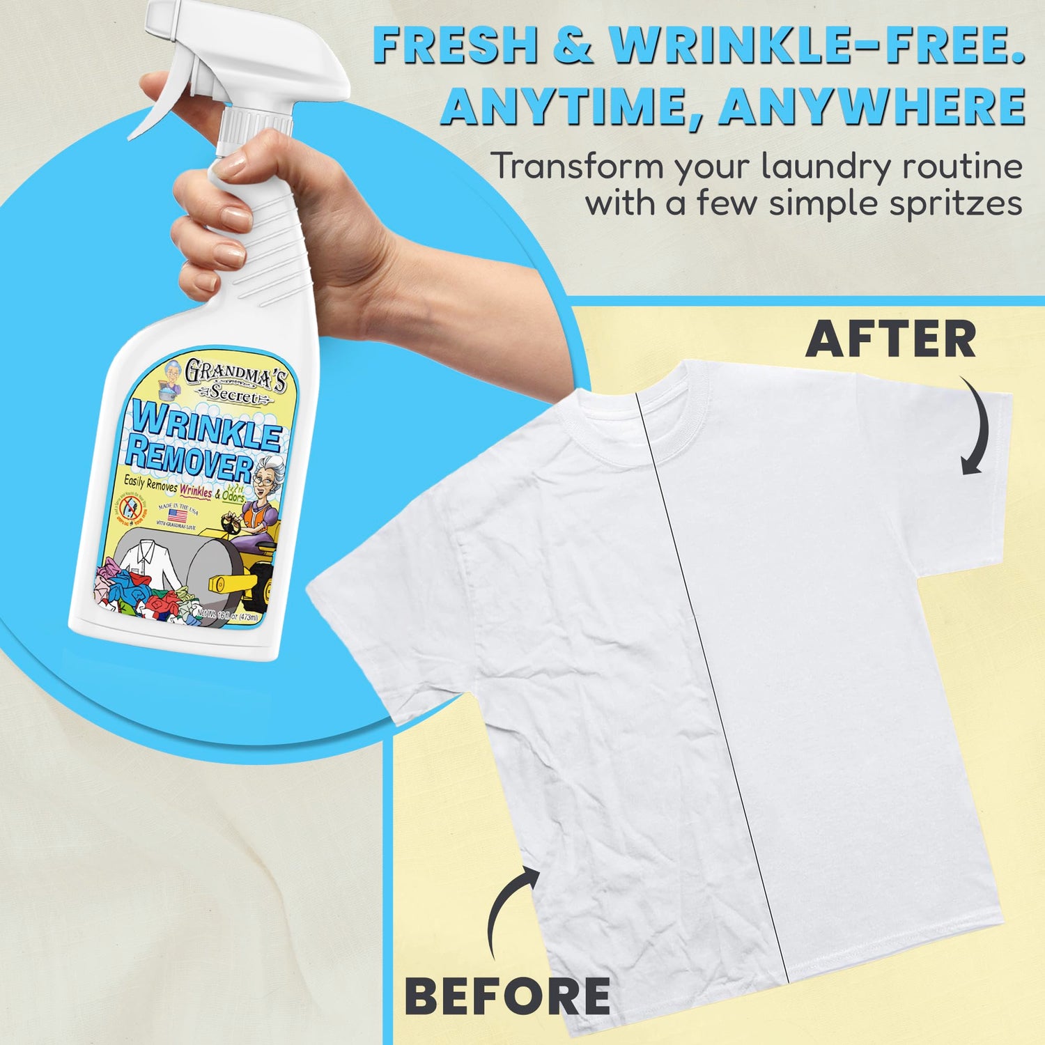 Grandma's Secret Wrinkle Remover Spray - Easily Removes Wrinkles & Odors - Wrinkle Release, Fabric Refresher Spray, Chlorine, Bleach and Toxin-Free - 16 Fl Oz (Pack of 2)