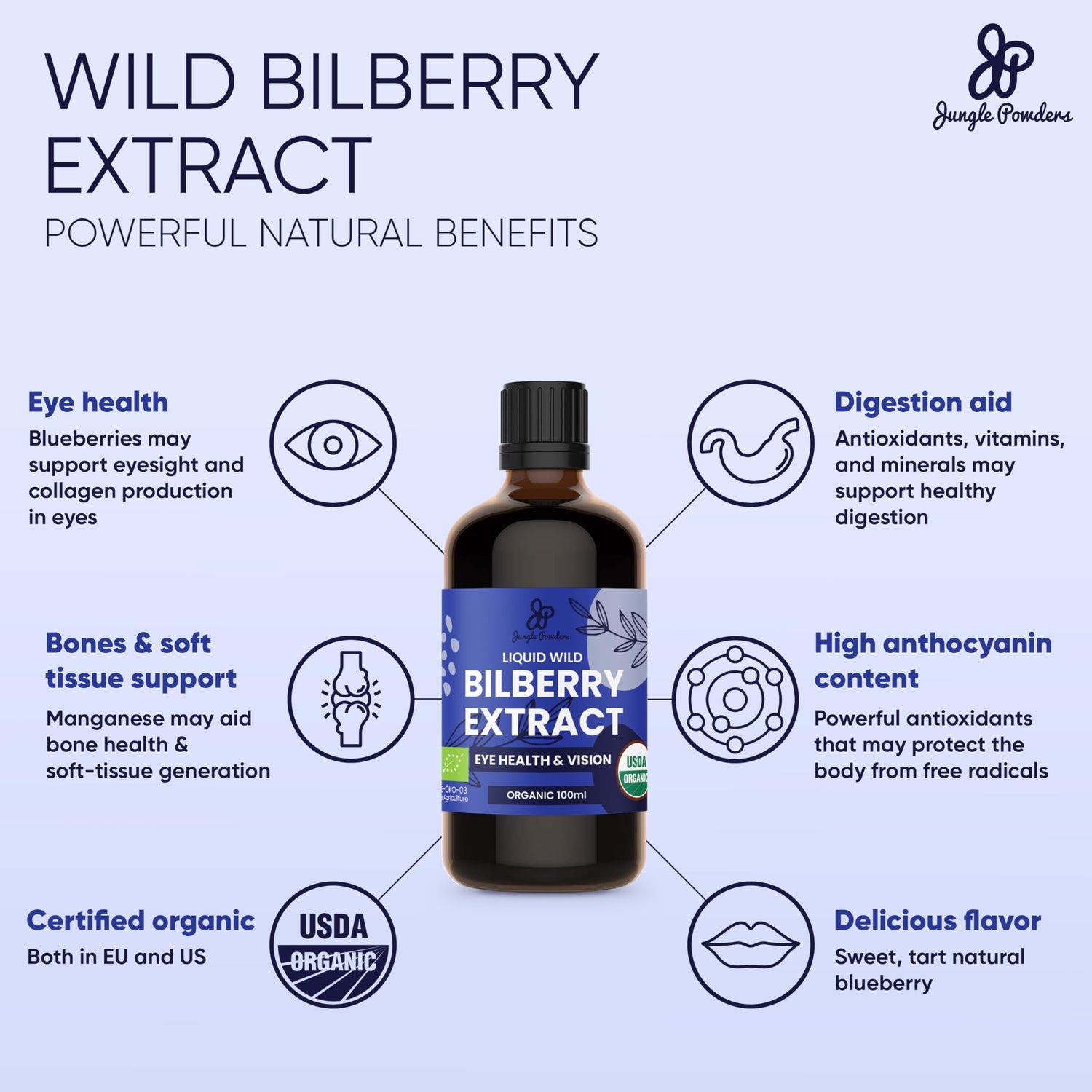Grandpa Gifts from Granddaughter Wild Bilberry Extract USDA Organic Alcohol-Free 2x3.4oz Bottle of Liquid Bilberry Gift for Grandpa Health Gifts for Eyes High Bioavailability Liquid Extract 40 Serving