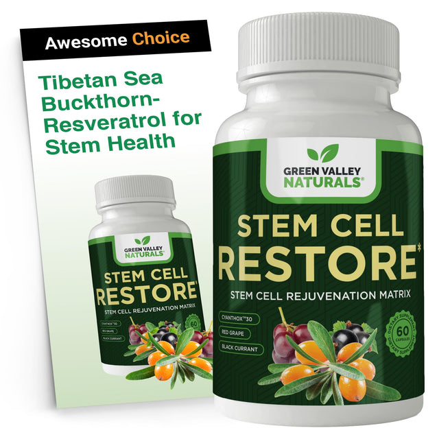 Details: Introducing Green Valley Naturals Stem Cell Supplement- the ultimate stem cell supplement. Our formula contains a unique, proprietary blend of ingredients that have been carefully chosen to provide you with maximum support for your overall health. We believe in using only the best and most effective ingredients in our products. That's why our formula includes Organic Tibetan Sea Buckthorn, CyanthOx30, Trans-Resveratrol, Black Current Fruit Extract, Grape Seed Extract, Vitamin D, and Bishop's Hat Extract. These ingredients have been lab-tested and peer-reviewed, ensuring that they are of the highest quality and potency. With just 2 capsules per day, you can feel the results of Stem Cell Supplement. Simply take the capsules with water and a meal, and experience the benefits. We take pride in our products being made in the USA, and we follow cGMP (Current Good Manufacturing Practices) standards. Our production process includes assay testing to verify the potency of raw materials, FTIR testing for ingredient identity, and screening for pathogens and contaminants. This ensures that you receive a safe and effective product every time. Stem Cell Supplement is a product of Green Valley Naturals - a trusted brand in the supplement industry. Our formula can be safely paired with other supplements for added support. However, we always recommend consulting with your nutritional expert before starting any new supplement or medication. Trust in Green Valley Naturals to support your body and mind safely with Stem Cell Supplement.