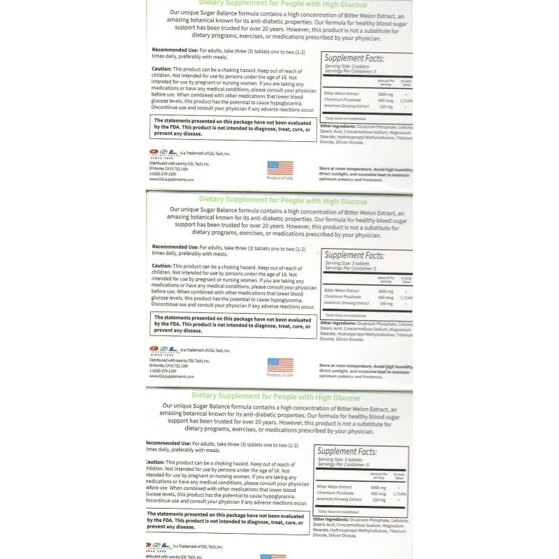 GSL Technology 3 Pack Sugar Balance Supplement for People with High Glucose 45 Tablets