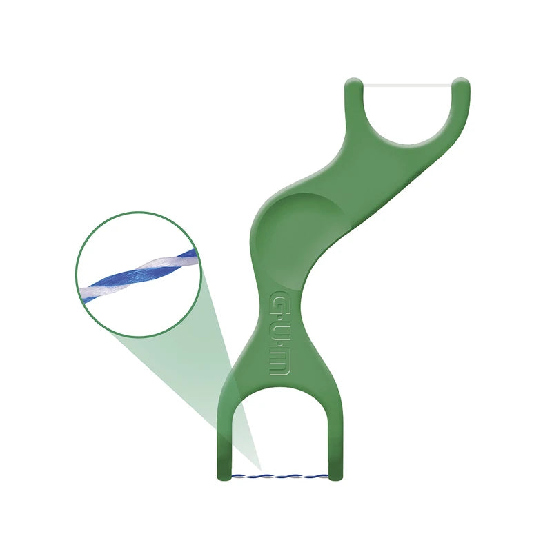 - Patent-penting twisted floss efficiently covers 30% more surface area