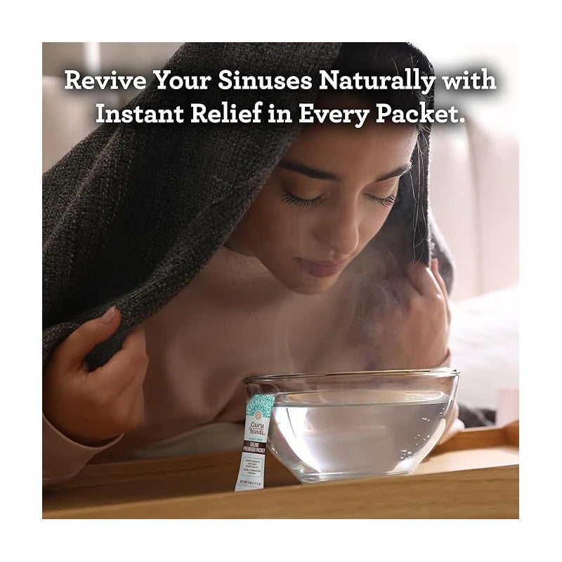 - Revitalize your Sinuses: GuruNanda Saline Packets may help alleviate sinus congestion, soothe sore throats, tackle dust, aid in fighting pollen, and may help prevent nasal dryness due to CPAPs or oxygen therapy.