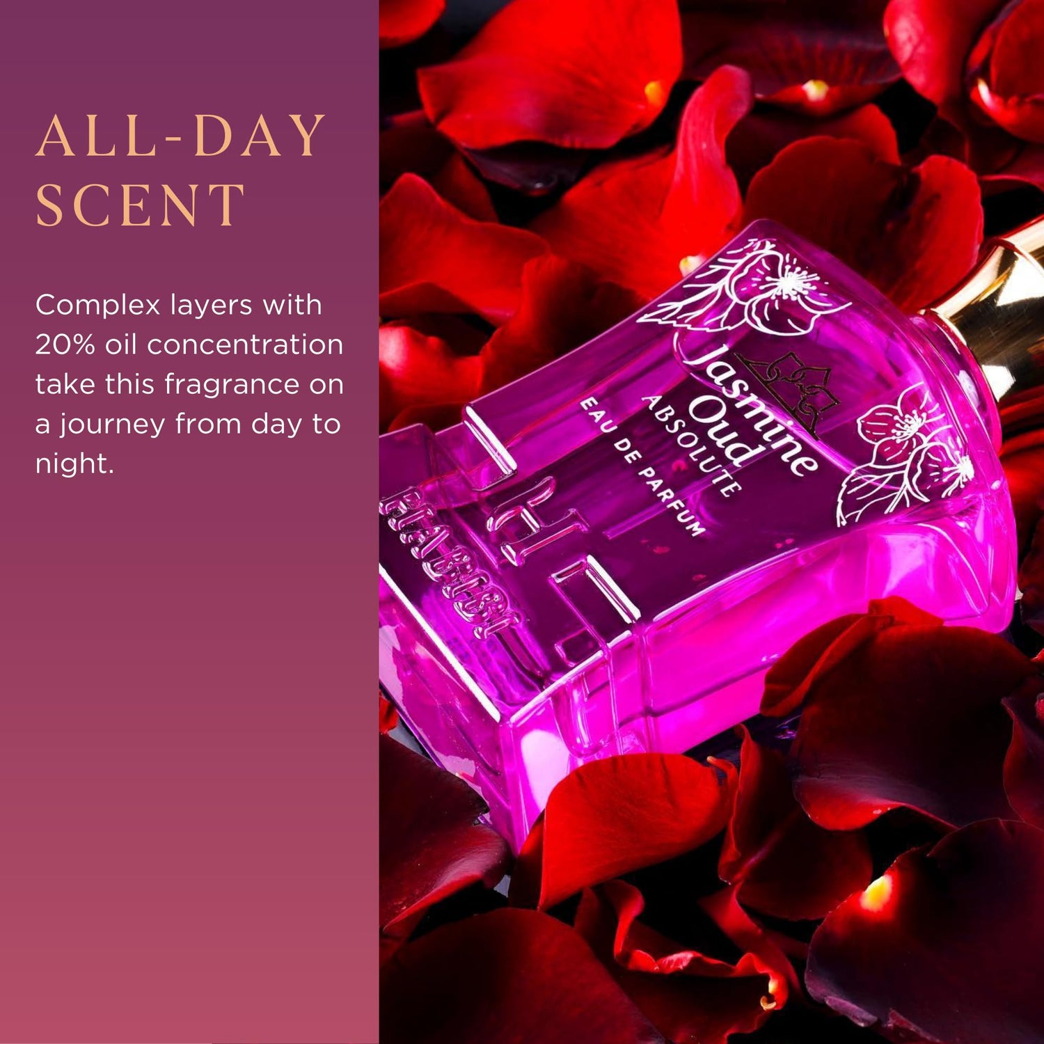 - SCENT OF LUXURY: This Eau de Parfum boasts a 25% perfume oil concentration, delivering a captivating scent for 6+ hours. An ideal parfum for women, its sweet, powdery jasmine oud exudes timeless elegance