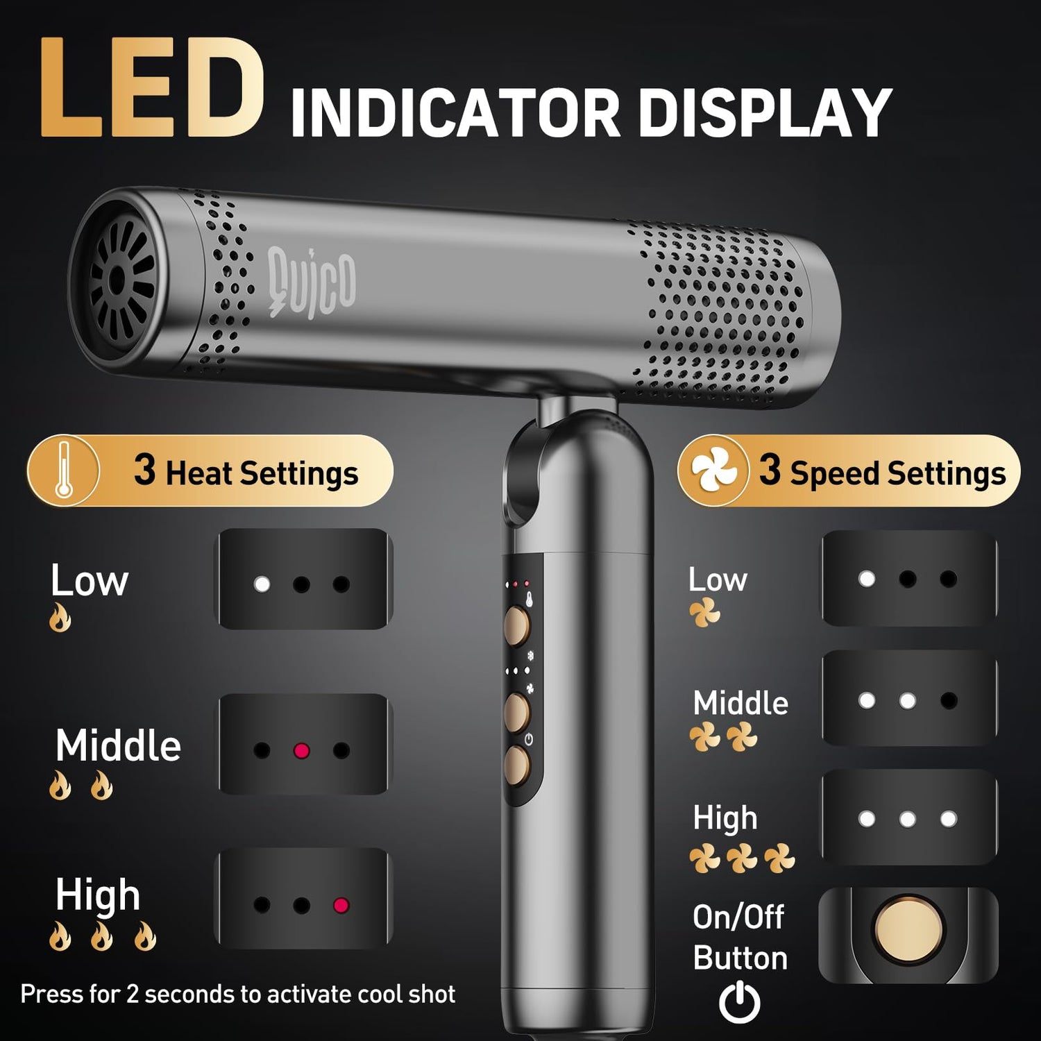Hair Blow Dryer, QUICO 120-240V Global Dual Voltage Hair Dryers for Women, 5X Faster 120000 RPM BLDC Blow Dryers, 500 Million Negative Ions, High-Speed Mini Hair Dryer, Cold/3 Heating/3 Speed Settings