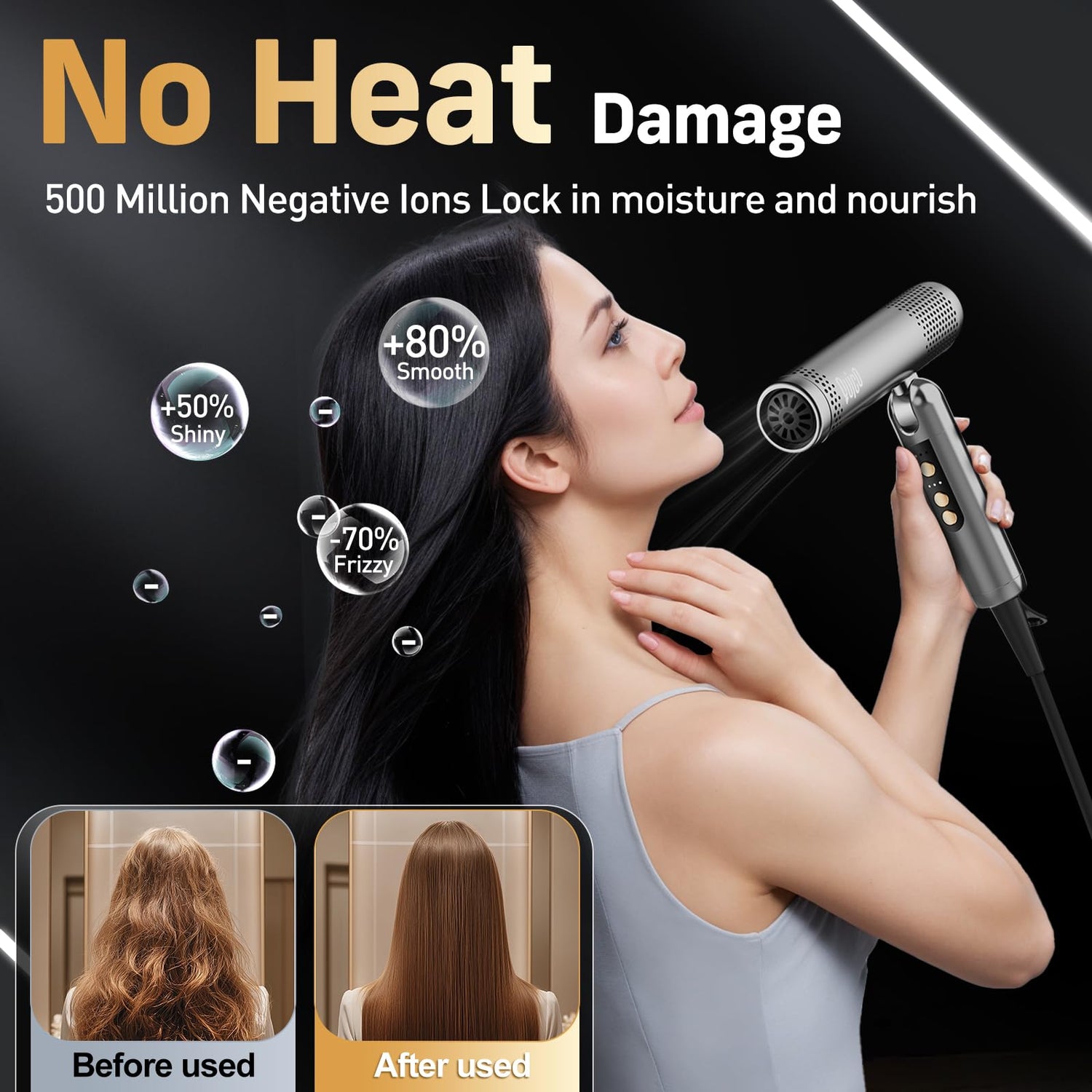 - ใ๐ฑ๐ฌ๐ฌ ๐ ๐ถ๐น๐น๐ถ๐ผ๐ป๐ Negative Ions to Nourish HairใOur foldable ionic hair dryer with diffuser uses advanced negative ion technology, releasing ๐ฑ๐ฌ๐ฌ ๐ ๐ถ๐น๐น๐ถ๐ผ๐ป๐ negative ions that reduce 99% of static. An ๐ถ๐ป๐๐ฒ๐น๐น๐ถ๐ด๐ฒ๐ป๐ ๐ต๐ฒ๐ฎ๐ ๐๐ฒ๐ป๐๐ผ๐ฟ monitors the temperature 1,000 times per second, protecting your hair from damage. Suitable for all hair types, it keeps your style frizz-free and ensures frizz-free results. Experience the perfect balance of care and styling power.