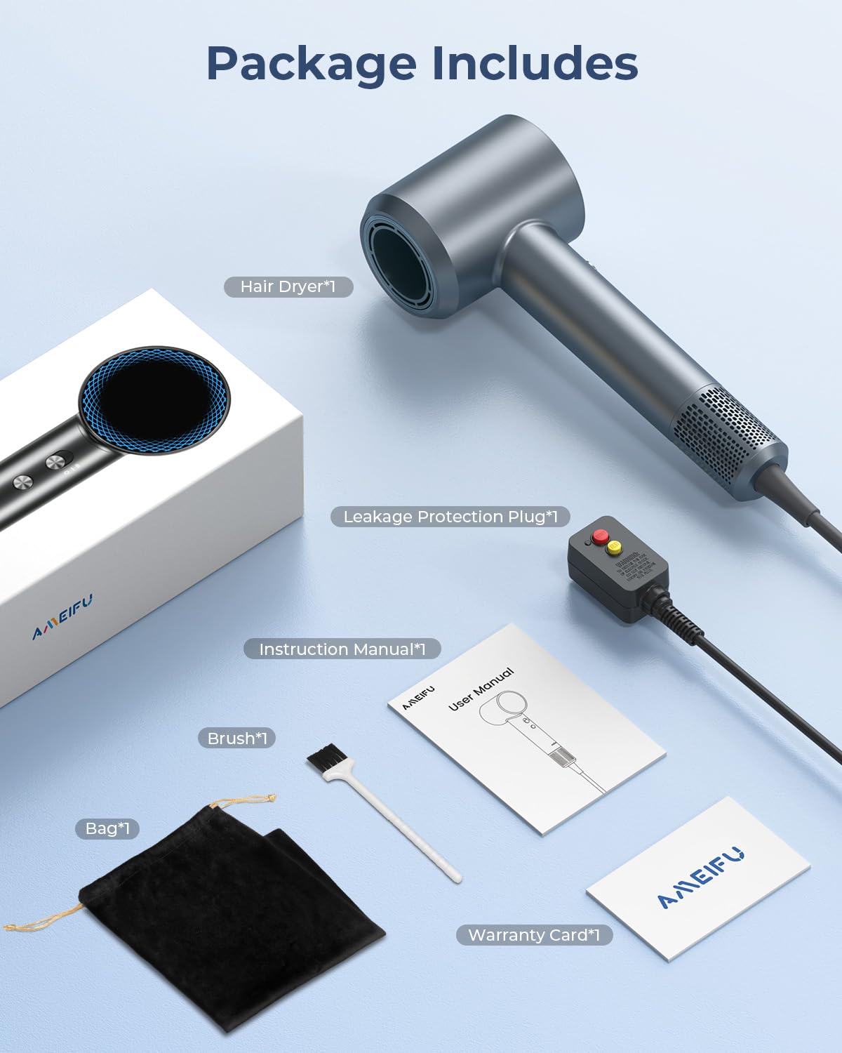 - 【Worry Free After Sale】We offer worry-free 365 days warranty and friendly customer service for our AMEIFU P2306D high speed hair dryer. We also offer a lifetime technical support for this powerful hair dryer for your peace of mind! The first choice of your lightweight hair dryers!