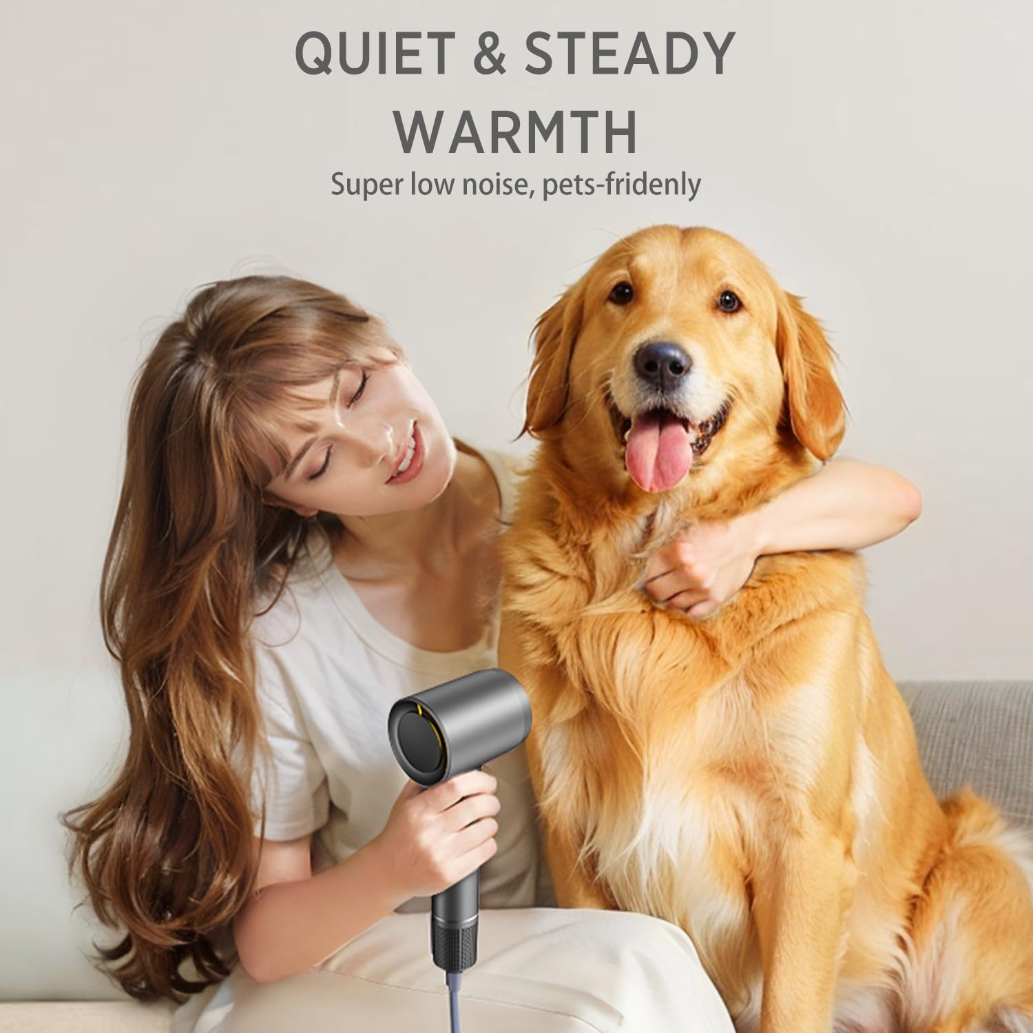 - [Lightweight & Quiet] Designed for ergonomic comfort, this hair dryer weighs a mere 0.89 lb, lighter than a cup of coffee. Its lightweight design minimizes arm fatigue, ensuring a relaxed and comfortable experience even during extended use. Equipped with 8-layer damping and noise reduction technology, along with high sound insulation and German PI sound-absorbing material, it maintains noise levels under 51 dB. You can use it anytime without worrying about disturbing others.