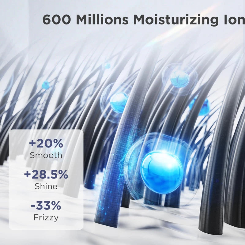 - Double Hair Care Technology: 600 Million Negative Ions help maintain moisture balance by sealing the cuticles, keeping your hair hydrated and preventing dryness. Besides, smart thermo-control auto adjusts temperature 100 times per second to prevent your hair from overheating damage. Visible +28% hair shine in 60 days