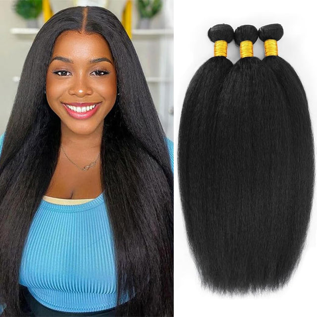- Yaki Straight Human Hair Bundles Color: Natural Black Kinky Straight Human Hair Bundles, Can Be Dyed, Bleached, Straightened, Curled, or Restyled As your Own Hair. Durable, Reusable Kinky Straight Hair Bundles.