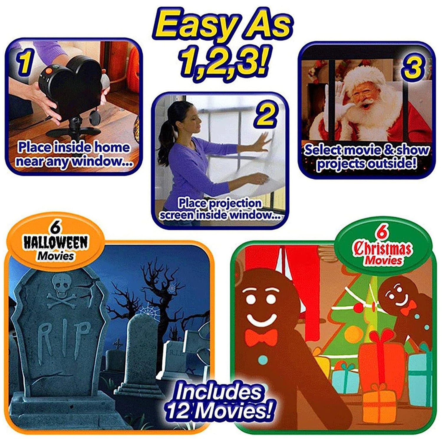 Halloween Window Projector, Outdoor Christmas Projector, Halloween Led Holographic Projection Lamp, 6 Halloween Movies, 6 Christmas Movies, for Window Garden Halloween Christmas Decor