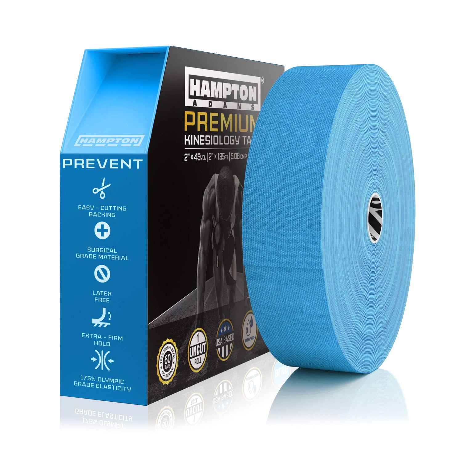 Hampton Adams | As Seen on Shark Tank | Elastic Kinesiology Tape (Bulk Roll) | 135ft Uncut | Supports & Protects Muscle Wrist Knee Shoulder Back Plantar Fasciitis | Waterproof Hypoallergenic (Blue)
