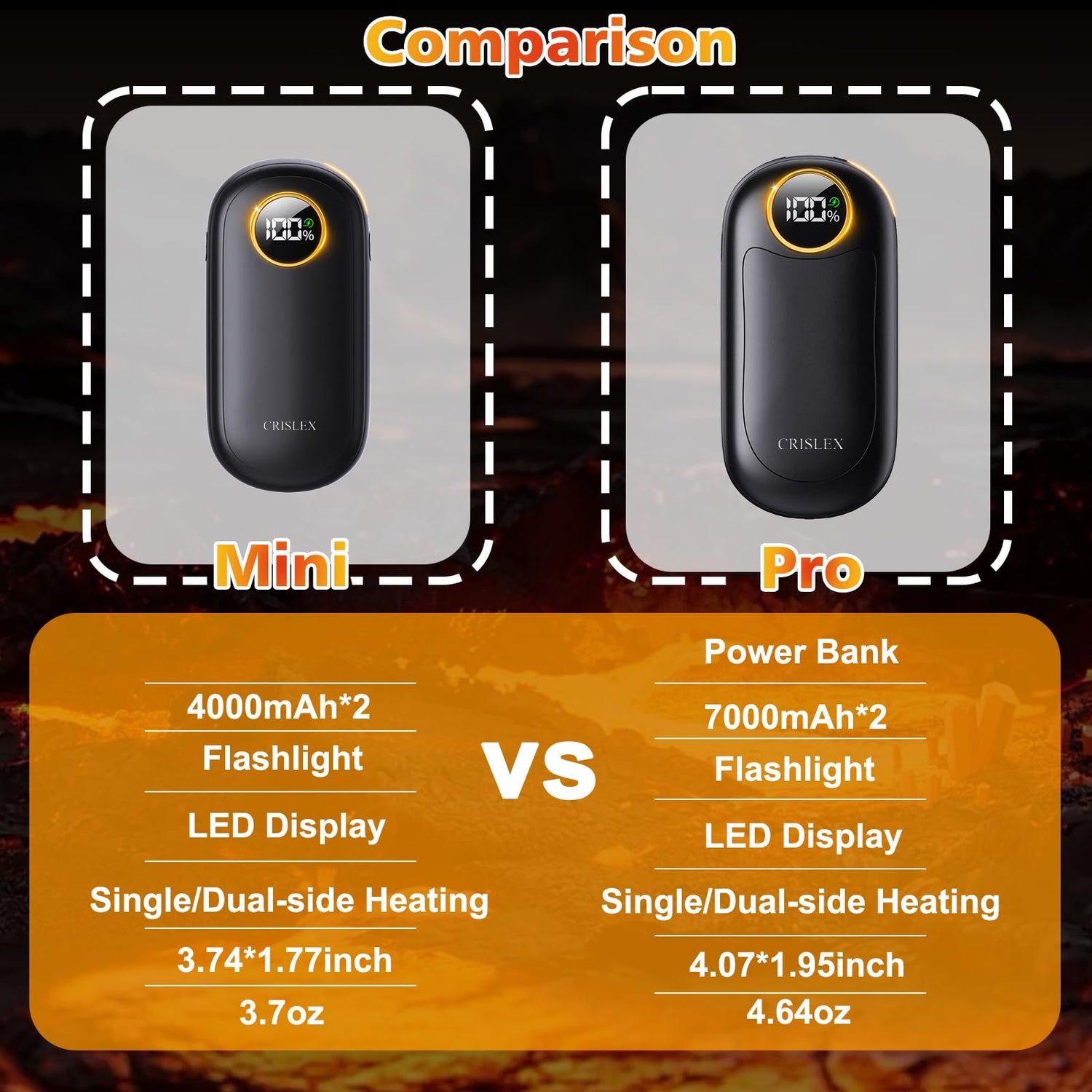 - 【LED Flashlight & Ergonomic Design】With a built-in LED flashlight, our battery operated hand warmers are ready when you are, providing essential light whether you're camping on a cold night or facing an emergency blackout. CRISLEX hand heater made of aviation grade aluminum heating element and ABS material, with a smooth surface formed in one piece, ergonomic design, lightweight and comfortable. We also accompanied two lanyard to prevent these pocket hand warmers falling when outdoor use