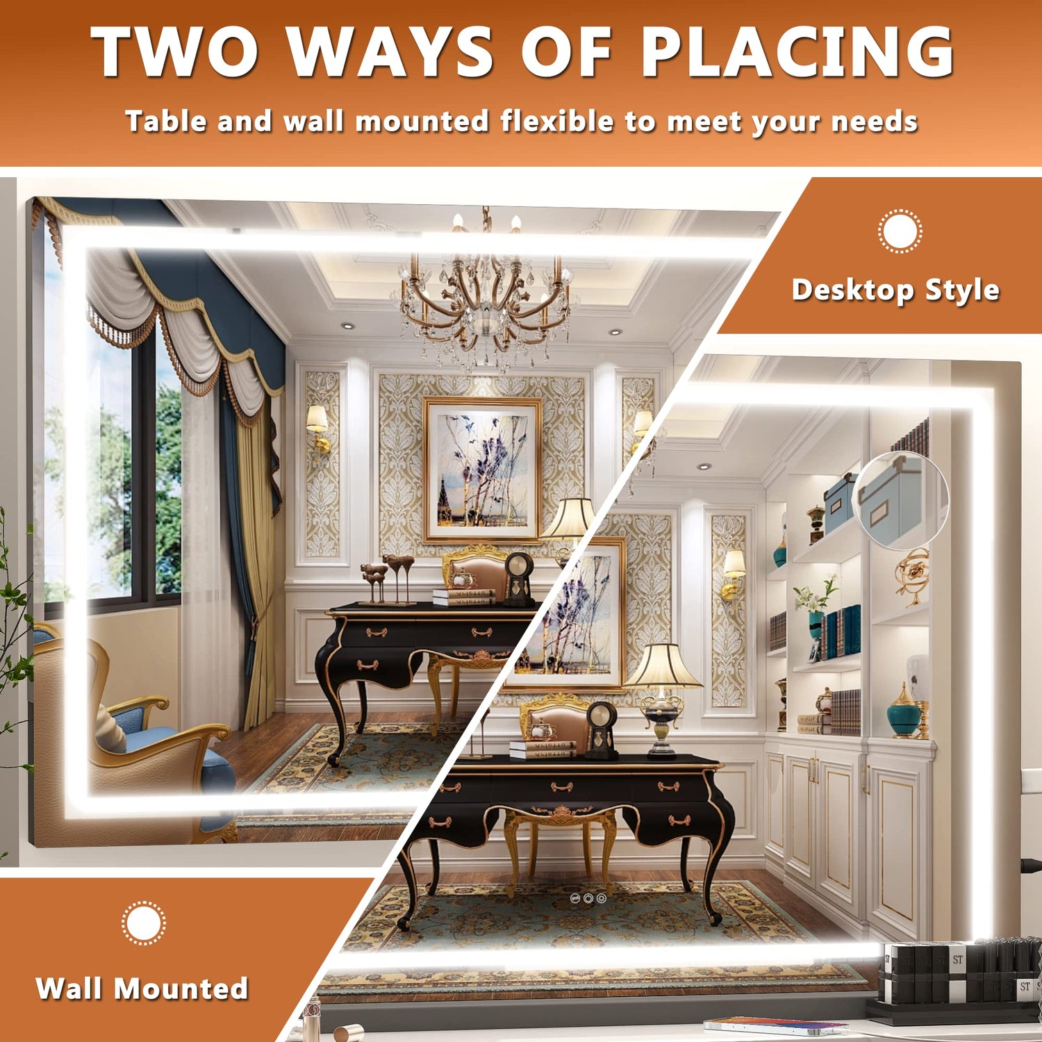 - šćDetachable Mirror Base & Hanging settingćWall mounted or Table Top design meet your different needs.This large makeup mirror designed with detachable base and two back hole for nail. 1.Removing mirror base with a screwdriver. 2.Knocking two nails on the wall. 3.Hanging mirror on the wall.