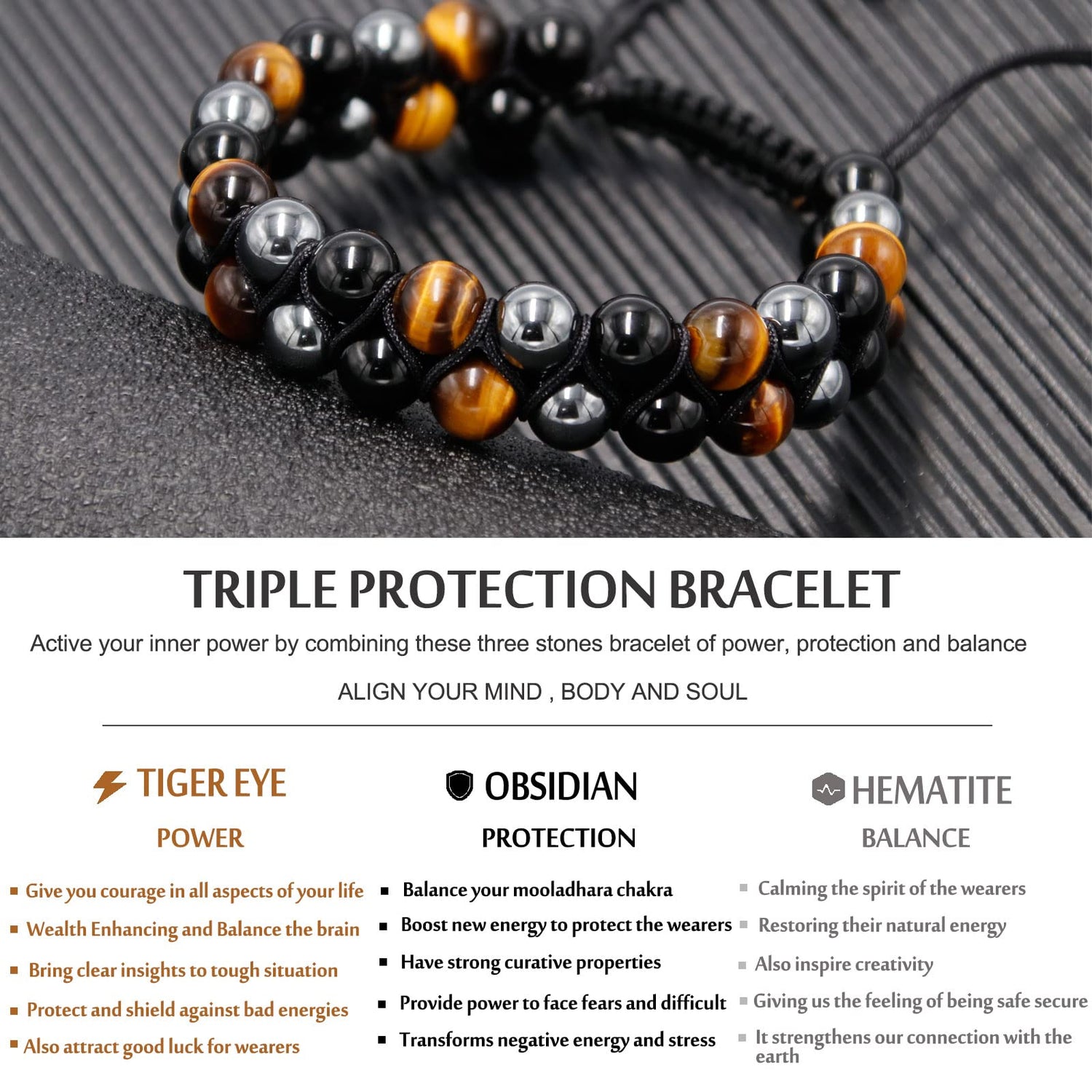 - ✦ Durable Craftsmanship ✦ The triple protection bracelet features stacked double beads and durable braiding for a trendy and chic look. The classic drawstring closure makes it easy to wear for wrist sizes between 7.1”-8.1”(18cm-20.5cm), and it is crafted by hand with meticulous attention to detail. This spiritual men bracelet serves as a great finishing touch to any outfit and is also helpful for people with tremble hands.