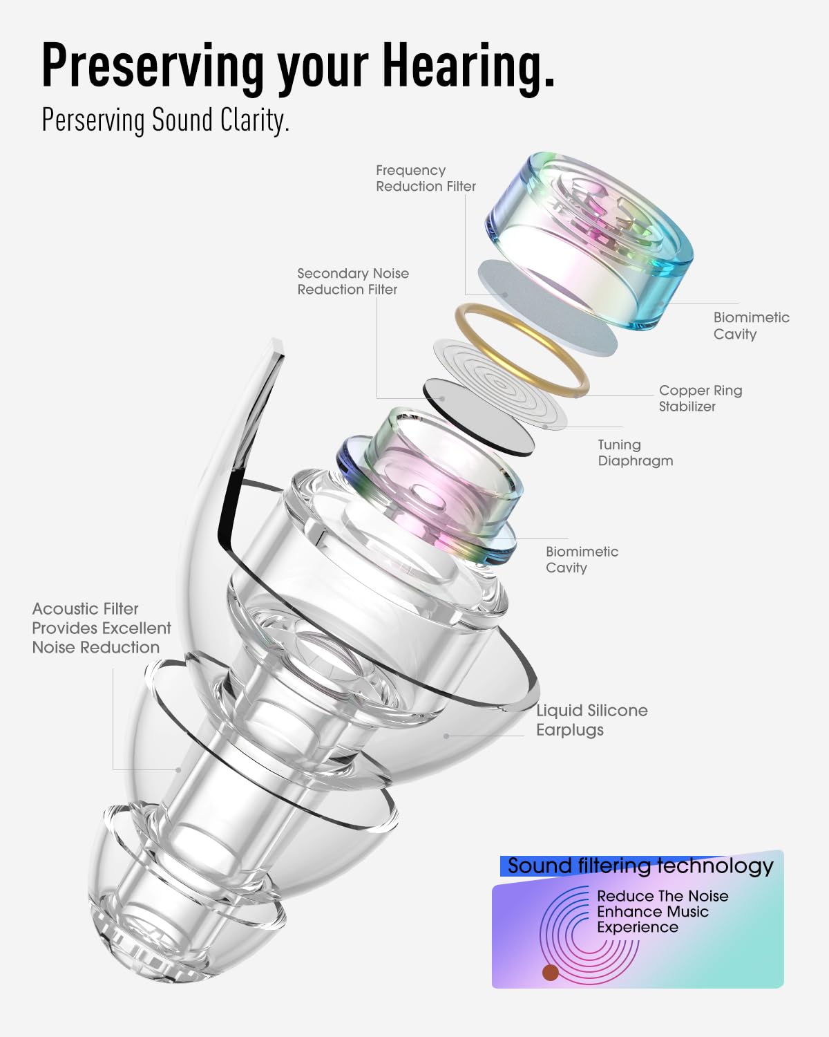 - High Fidelity: Hearprotek Music ear plugs do an effective job of bringing down the overall volume, blocking background noises at a comfortable level while preserving the sound clarity and sharpness and you will be able to hear different sound frequencies