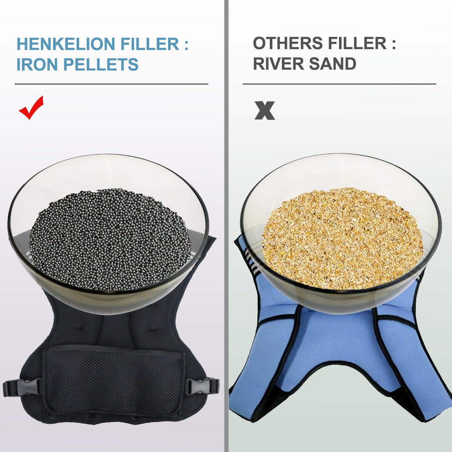 - IRON PELLETS & METAL ROCK - Henkelion weighted vest is filled with premium iron pellets and metal rock rather than using cheap river sand