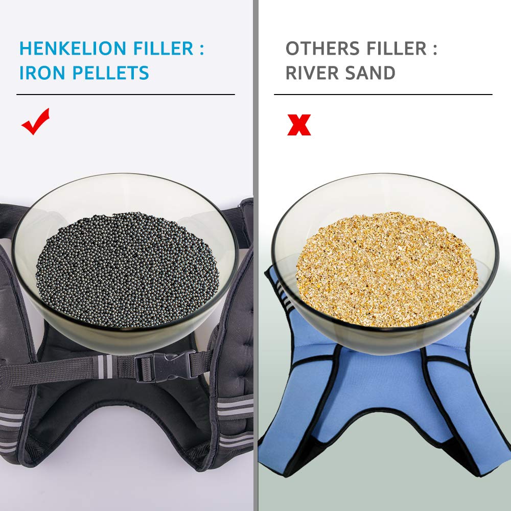 - IRON PELLETS & METAL ROCK - Henkelion weighted vest is filled with premium iron pellets and metal rock rather than using cheap river sand
