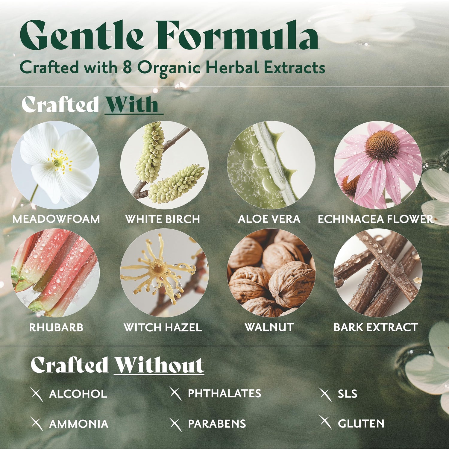 - HAIR HEALTH MATTERS - Our unique formula with 8 organic herbal extracts tone and enhances color. It is clinically and dermatologically tested on sensitive skin. Crafted with NO alcohol, ammonia, resorcinol, parabens, gluten, SLS, or Phthalates.