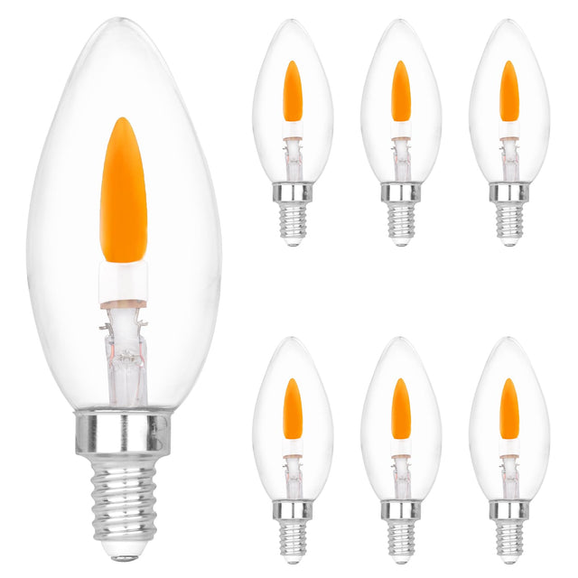 HEWA-Tech E12 Base C35 Flame Tip Flicker Bulbs - Crystal Clear Candle Light with Orange Glow Effect for Halloween/Christmas, E12 Non-Dimmable Chandelier Replacement Bulbs, 6-Pack (C35E12 Clear) is backordered and will ship as soon as it is back in stock.