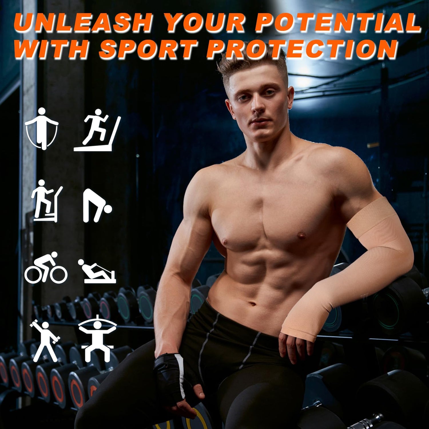 - π¨π‘ππ€π¨π πππ¦πππ‘: Our swelling compression arm and hand sleeve is designed with an extra-long cuff to support and cover the palm, wrist, forearm, elbow and upper arm, providing continuous relief & protection. The full arm support sleeve is equipped with dotted silicone bands at the top to prevent the cuffs from slipping during intense exercise. If you find it irritating to the skin, just flip over the top anti-slip band over to avoid irritation and prevent it from becoming a tourniquet