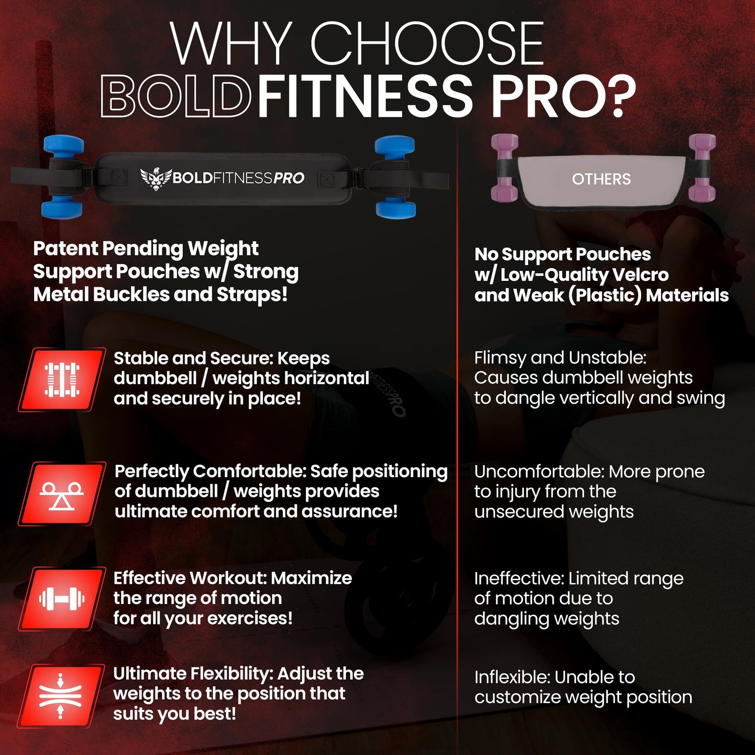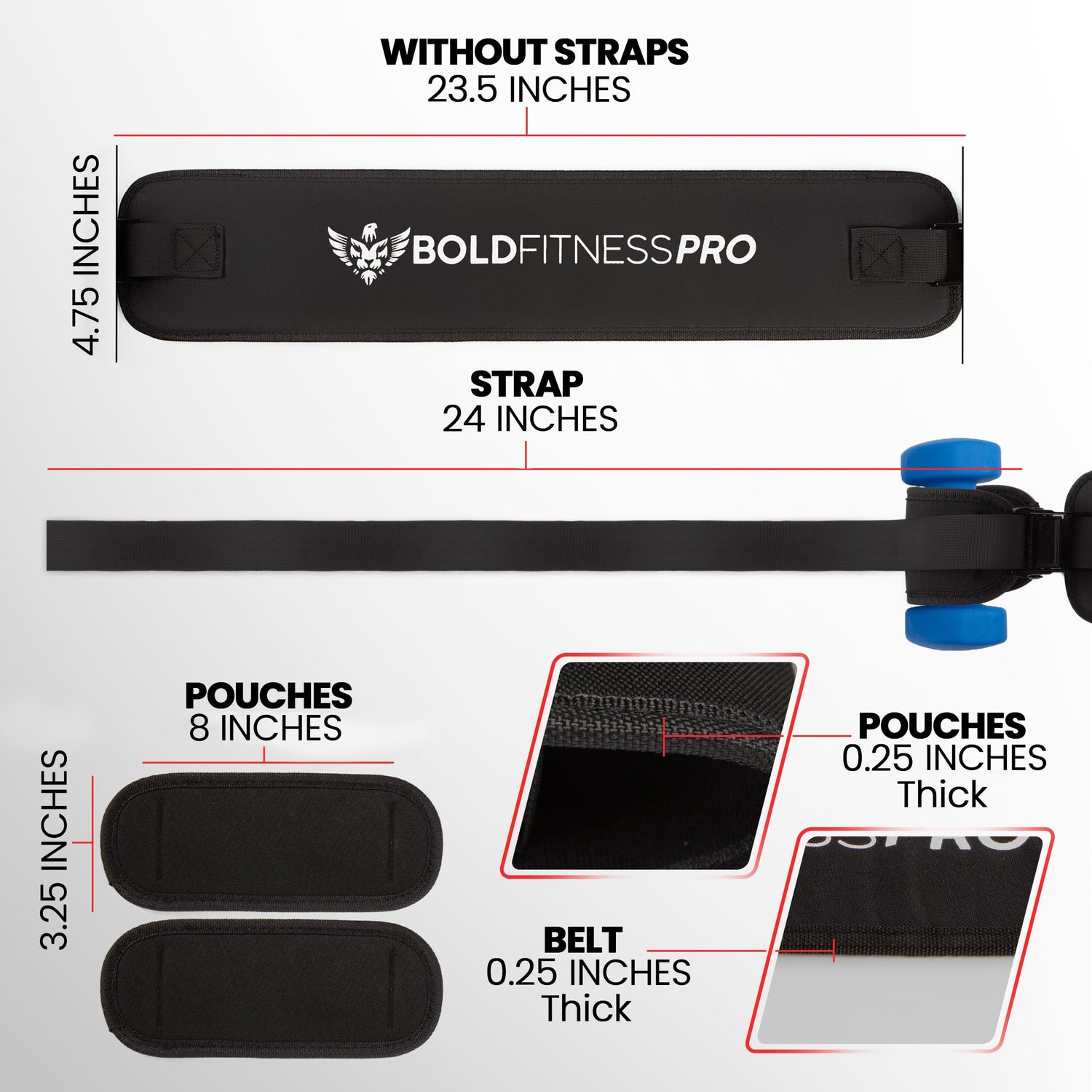- Ultra-Durable - Our hip thrust belt for weights is a super durable home gym belt that features sturdy metal buckles, high-strength polyester straps, and patent-pending Weight Support pouches that enables the hip band to support up to 50 pounds on each side.