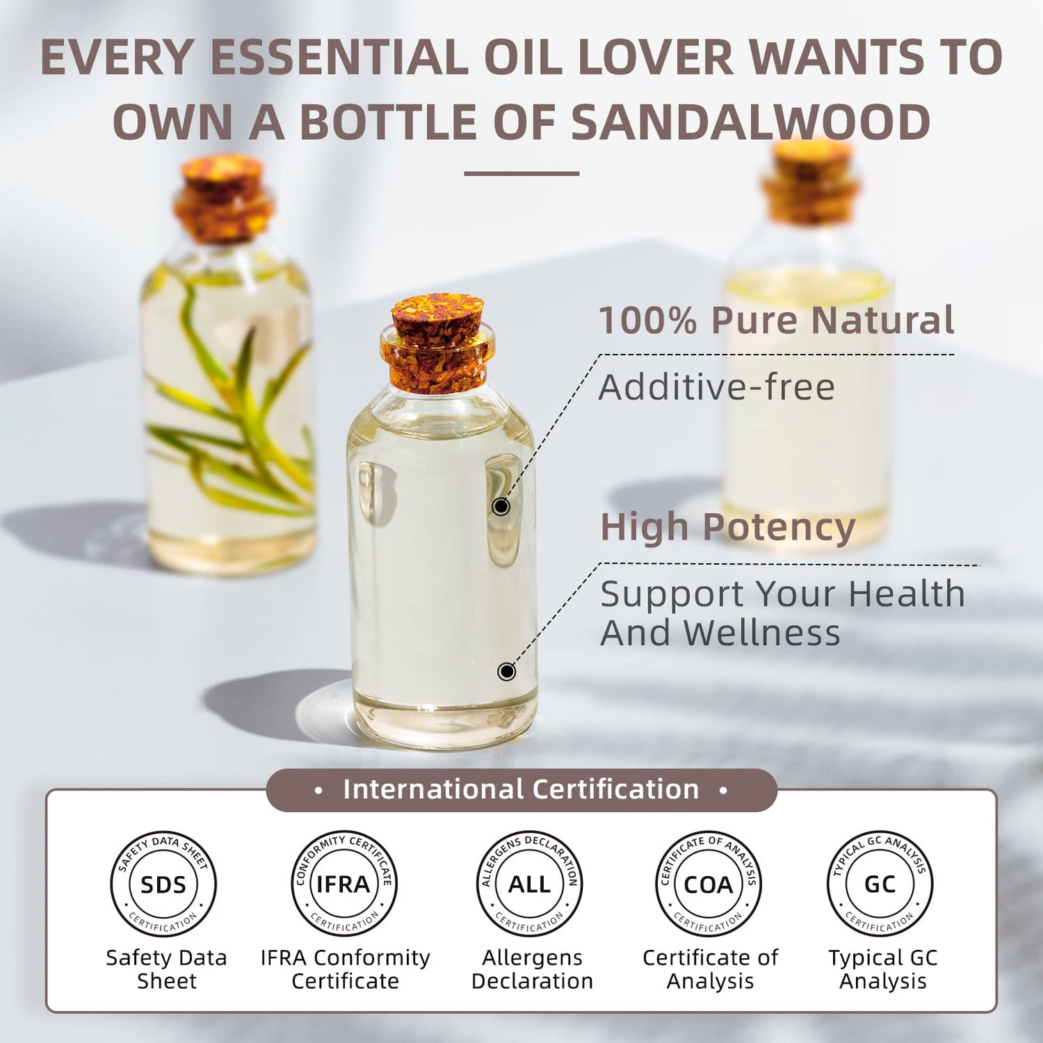- Multi Purpose: Sandalwood essential oil has a wide range of uses, it can be used to moisturize the skin, improve the skin condition, and its strong and long-lasting fragrance is also very suitable for perfume blending