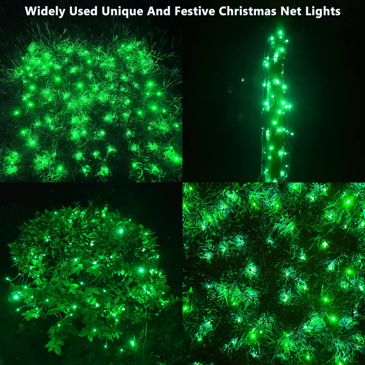 - 【Ideal Outdoor St Patricks Day Lights】Our 5ftx5ft 100led Christmas net lights string has a length of 9.84ft in front lead and 1.64ft in rear lead, perfect outdoor indoor decorations for Christmas, Thanksgiving, Easter, Halloween, party, yard, balcony, garden, pergola, gazebo, especially for trees and bushes. The green wire grid can perfectly blend with green bushes and trees, making your yard/garden look more natural during the day.