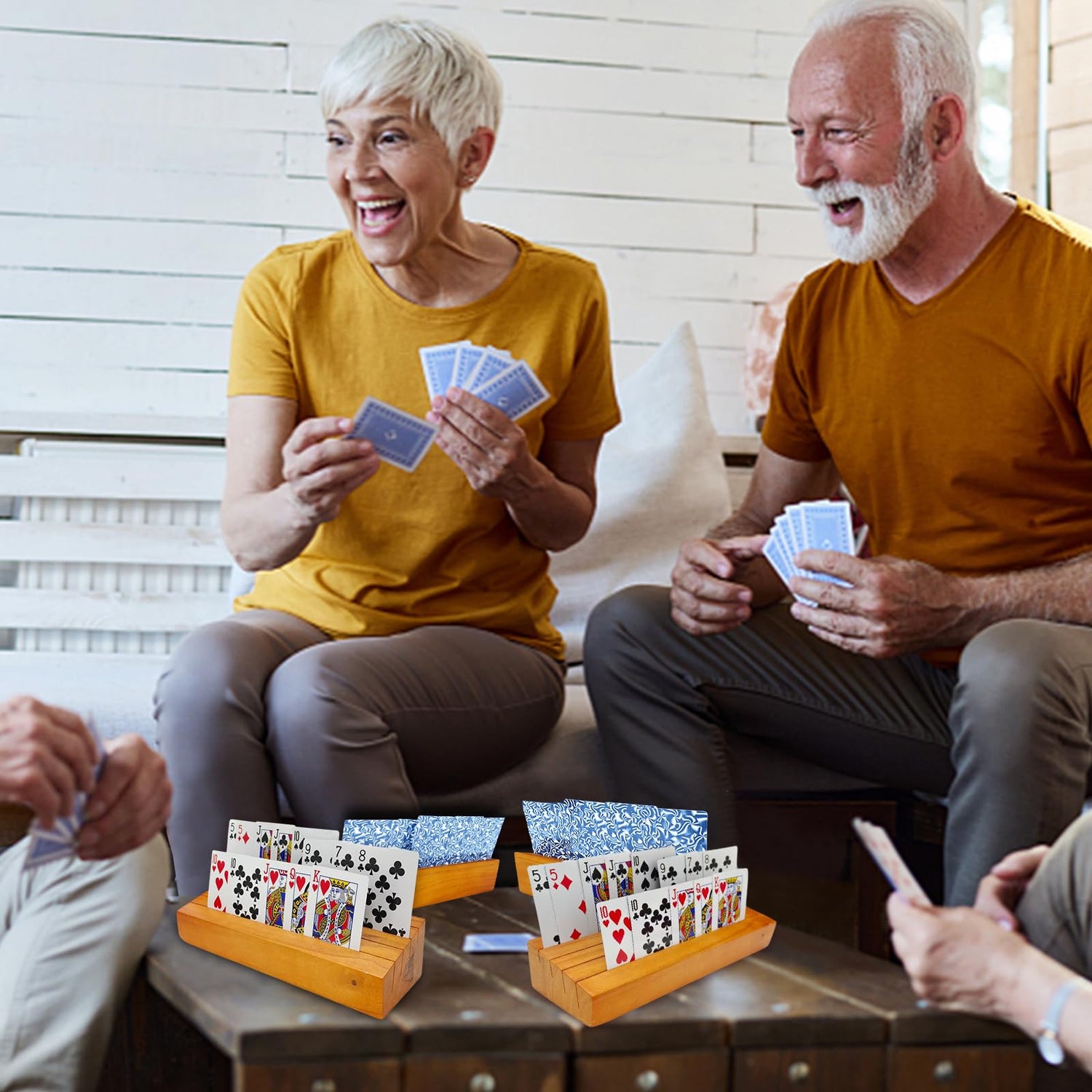 hismocal Playing Card Holders Deck Stand, Play Cards Holder for Kids or Elder People, Hands-Free Wood Holder Racks,Tray for Organizing Cards (4 Pack) is backordered and will ship as soon as it is back in stock.