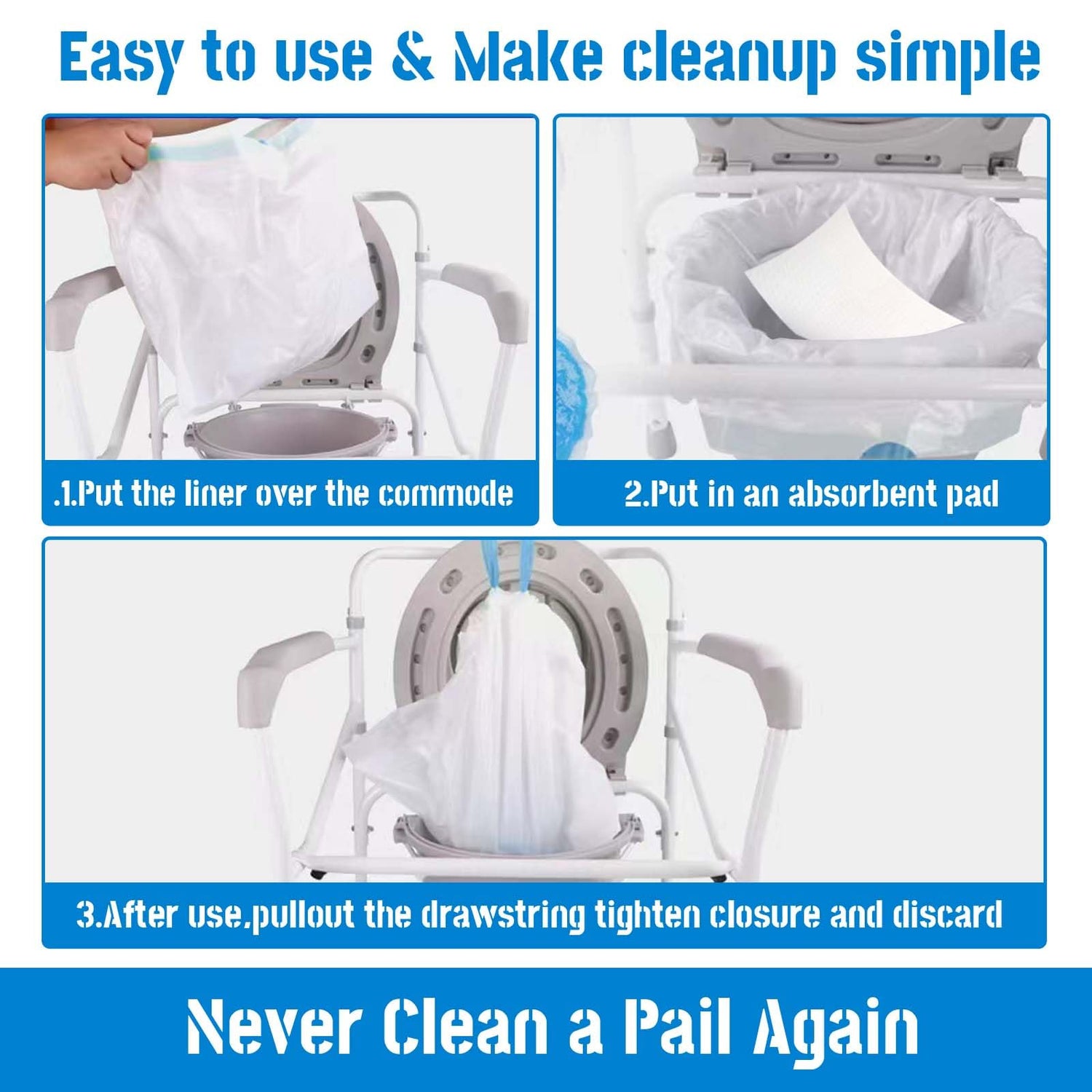 - [Premium Material & Extra Thick] These bedside commode liners disposable are made of medical grade LDPE plastic with high load bearing, tear and puncture resistant properties.No more worries about tears and leaks.