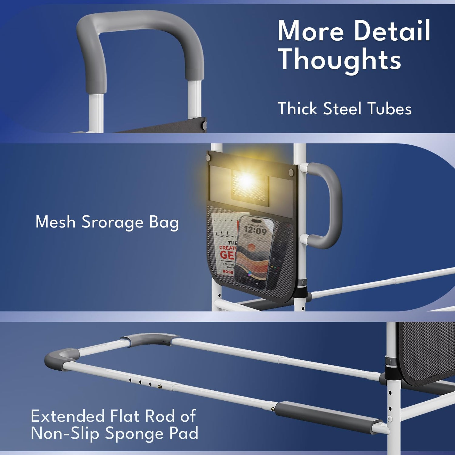 - Dual Ergonomic Support, Bedside Assistance:The bedside assist design specifically for seniors living at home or in assisted living facilities, boosts independence and mobility. Designed for adults, seniors, and those with mobility challenges. Dual ergonomic grips align with natural body movement and soft non-slip handle aids for getting in and out of bed easily and secure, lift with confidence using our support system that reduces joint strain by 42%.