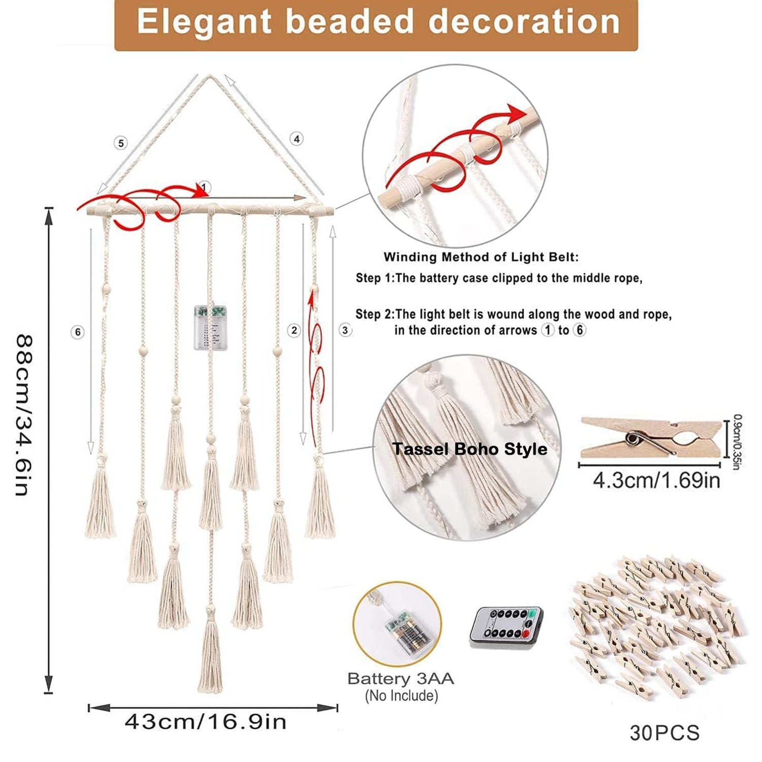 - BOHO ROOM DECOR: It can bring some texture and interest to your bedroom, dorm room, living room, apartment, work area or any wall you want to come decorate with a wall mount. At the same time, fairy lights can add a warm and sweet atmosphere to a room.