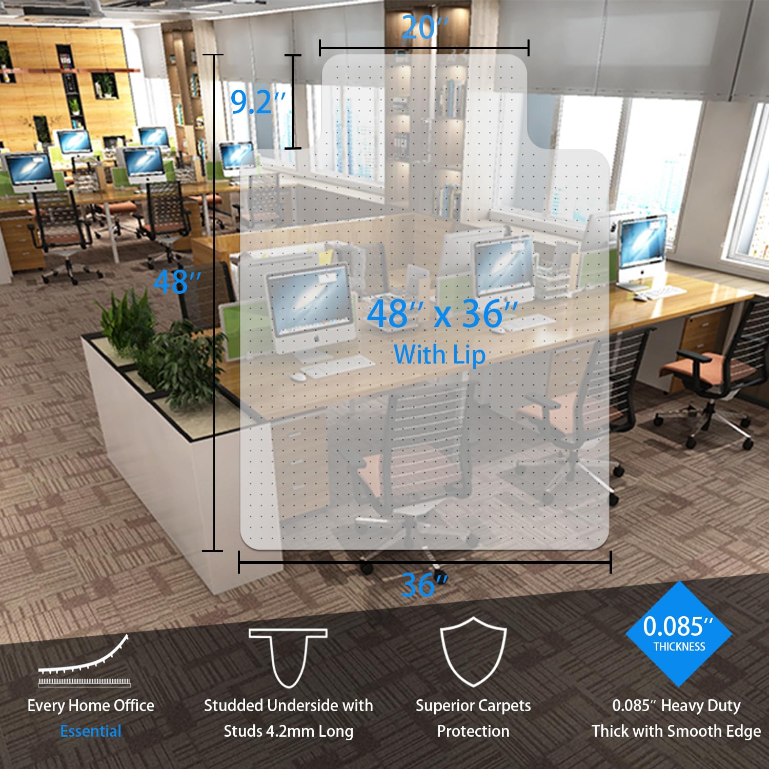 HOMEK Studded Carpet Chair Mat, 48” x 36” Heavy Duty Office Desk Chair Mat for Carpet
