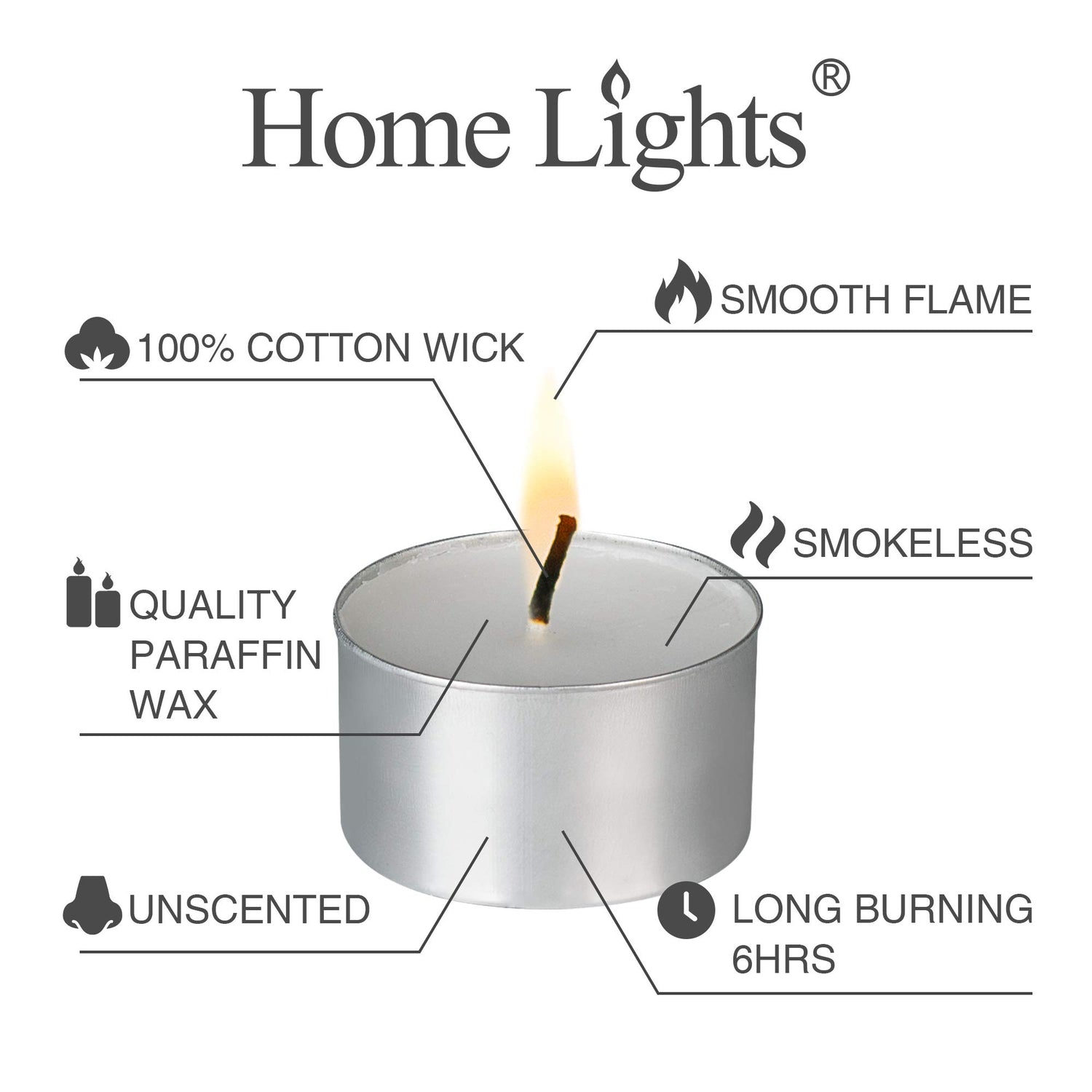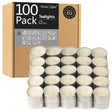 HomeLights Unscented White Tealight Candles -100 Pack, 6 to 7 Hour Burn Time Smokeless, Mini Votive Paraffin Candles with Cotton Wicks for Shabbat, Weddings, Christmas, Home Decor