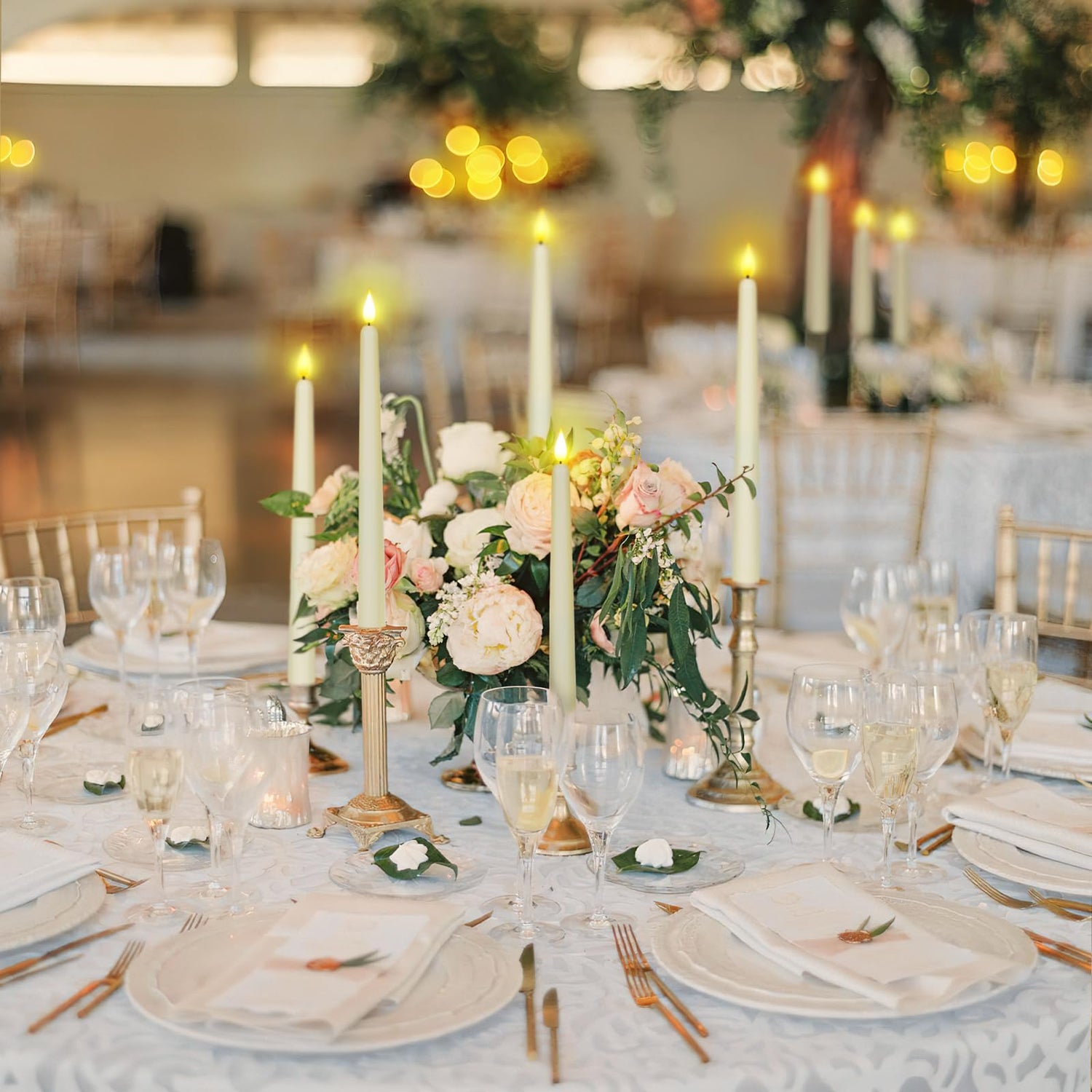 - Lifelike Plastic Made: These realistic battery operated taper candles are made of wax-looked modulated plastic, unmelted, won't crack, and won't degrade over time, decorated with 3D bead and black wick, perfectly simulate real taper candles.