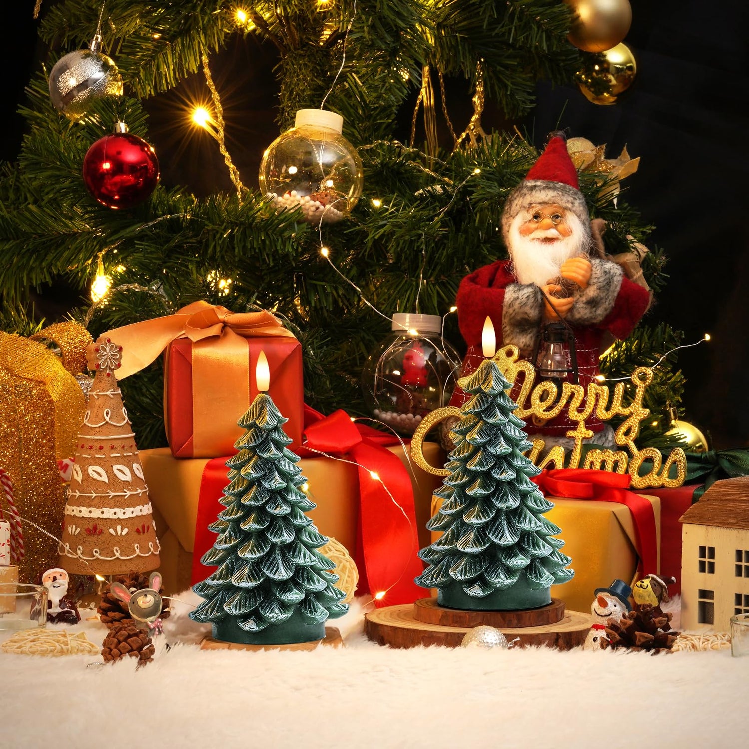 - Christmas Tree Design: Real wax made, lifelike leaves, 3D flickering flame, all these Christmas Tree candles can bring you the classic cozy household atmosphere of quiet comfortable warmth without any drips, smoke, or flames, perfect for winter holidays and Christmas!